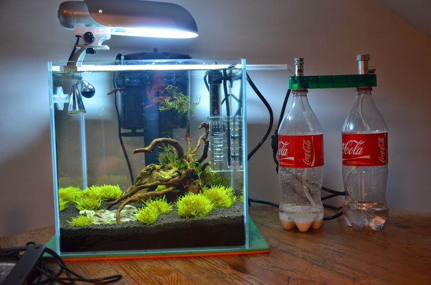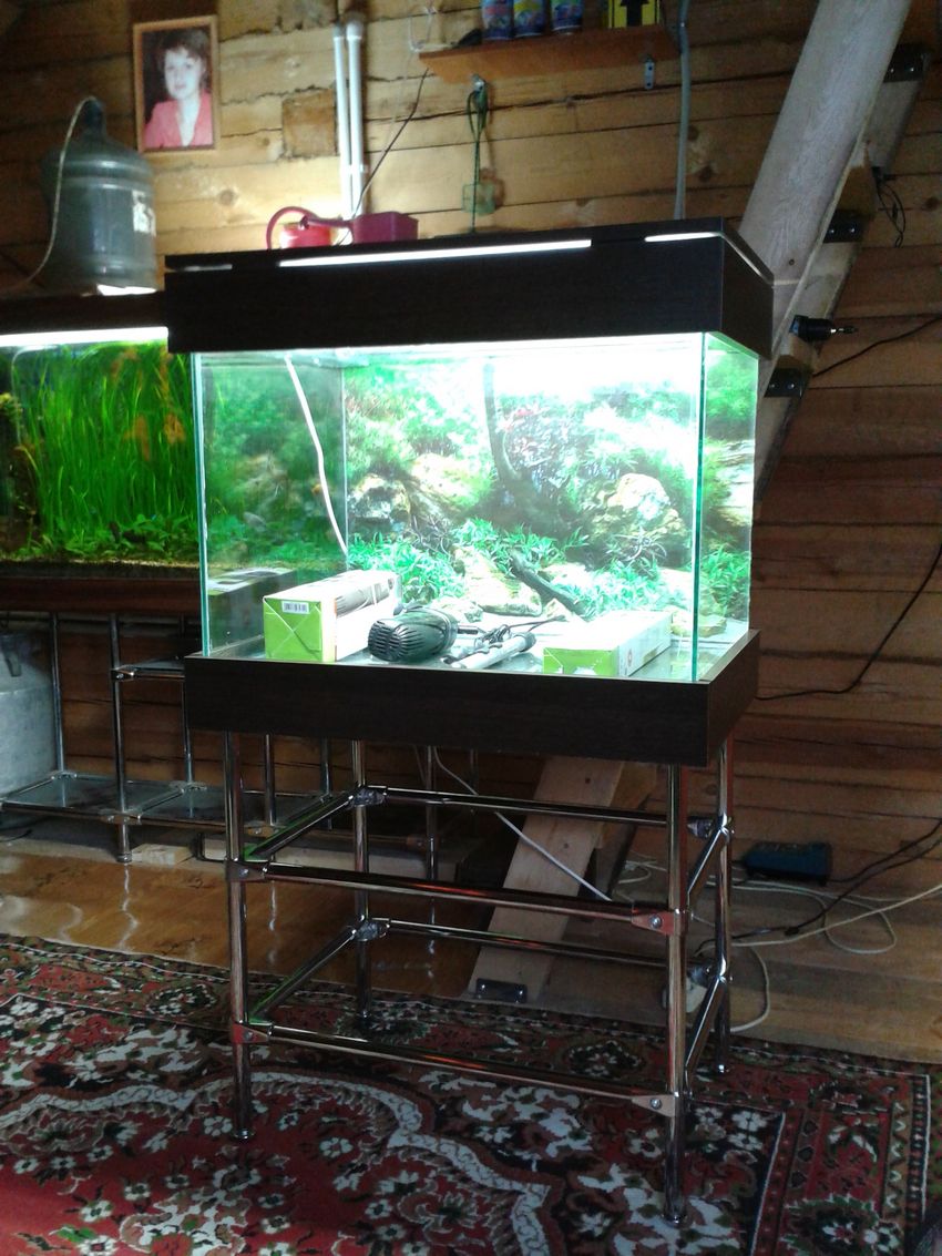- Ensuite, le contenu est rempli et décoré et le couvercle est mis en place. L'aquarium est mis en service et les poissons et mollusques sont introduits.