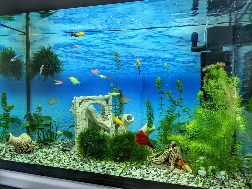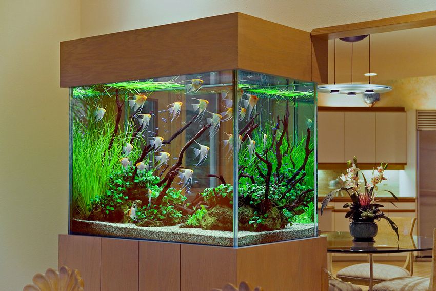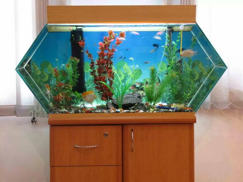 - l'aquarium peut être placé n'importe où, est réalisé avec les bons paramètres, sera agréable à regarder ;