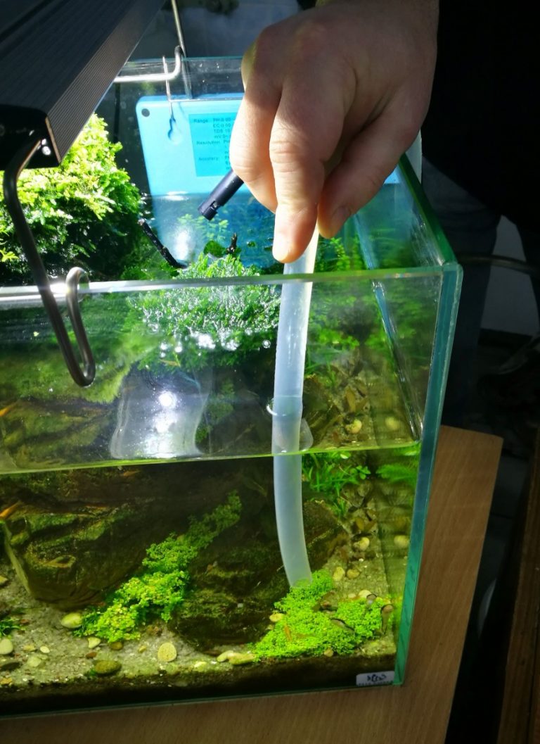 - L'aquarium doit être testé pour détecter la présence de fuites. Il est rempli d'eau et les joints sont vérifiés. Les défauts sont éliminés avec du mastic, en ajoutant de la colle aux trous.