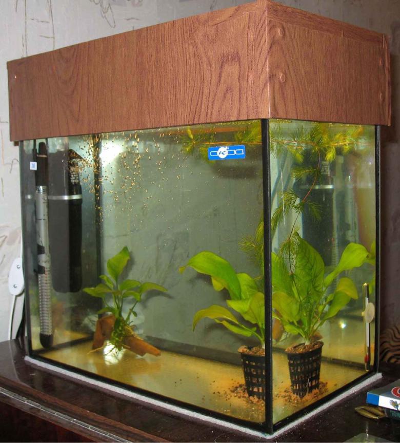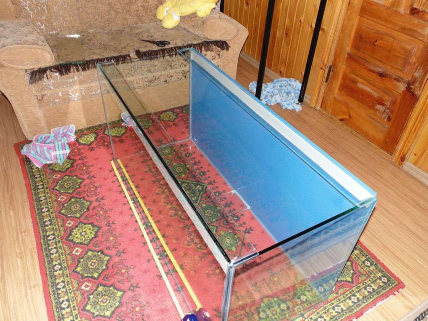 - Pour un petit aquarium, qui sera posé sur la table, il convient d'utiliser du verre avec une couche de 4 mm. Il peut contenir jusqu'à 30 litres d'eau (environ 3 seaux).