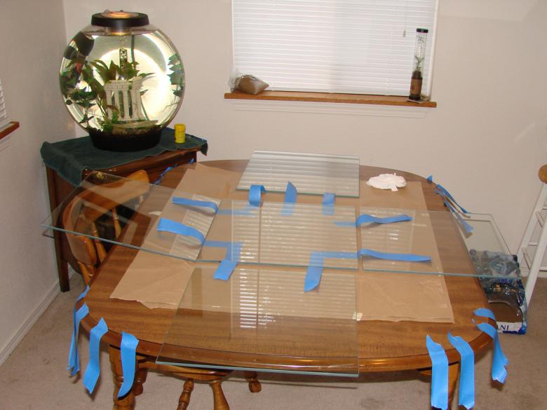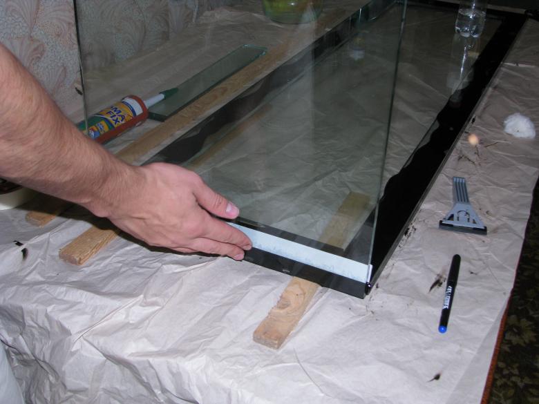 Le verre doit être de haute résistance et de qualité. En outre, toutes les étapes de l'assemblage doivent être abordées avec soin et attention. Épaisseur - 4-8 mm. Dimensions - en fonction de la taille du réservoir.