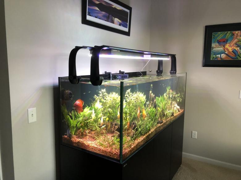 Important : les poissons ont besoin d'un éclairage stable et de bonne qualité, 24 heures sur 24. Pour dormir, ils se cachent dans leurs grottes ou dans des fourrés d'algues.