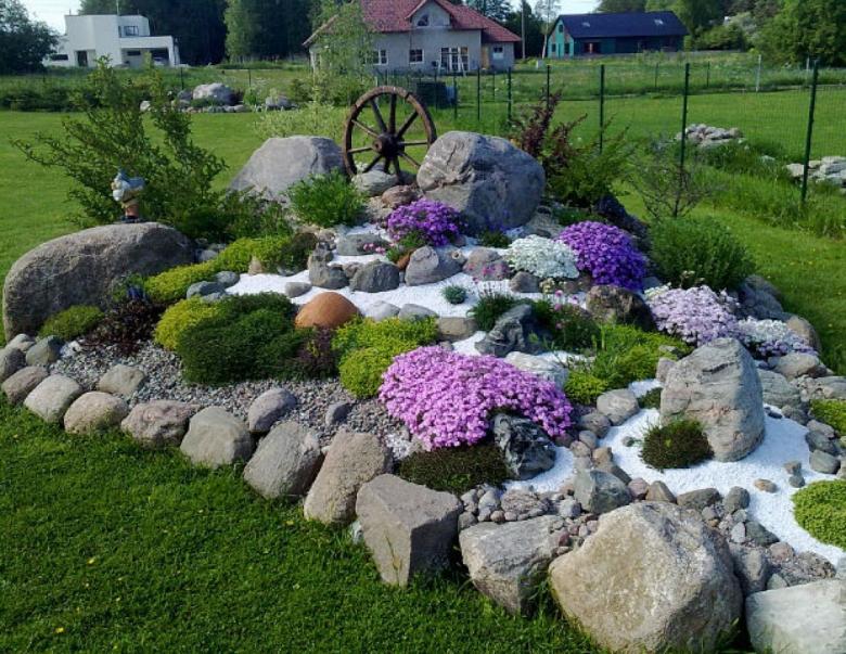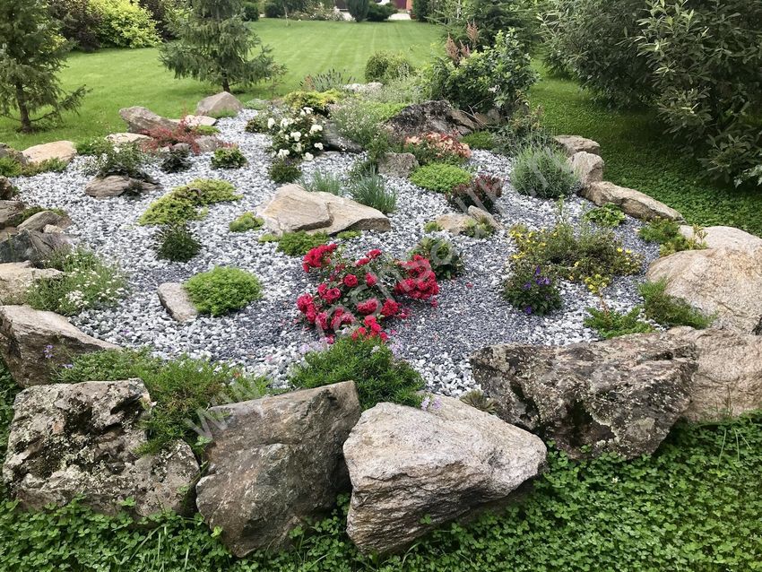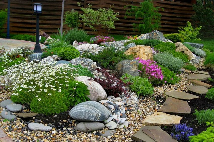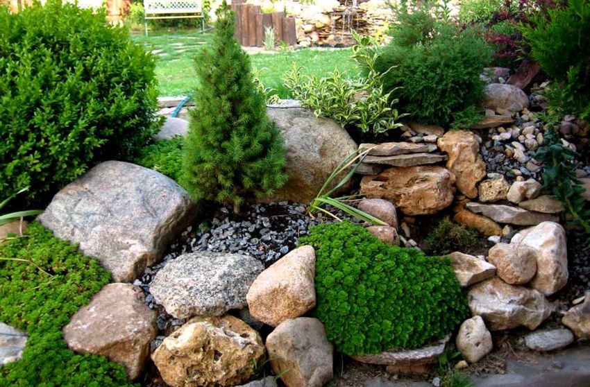 Les pierres sont les éléments clés du jardinage paysager décoratif et rendent la rocaille reconnaissable. Lorsque vous décidez de la taille de votre future installation, recherchez des pierres de grande et moyenne taille, leur couleur et leur forme géométrique :