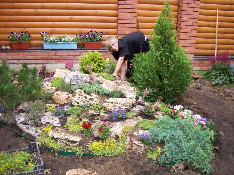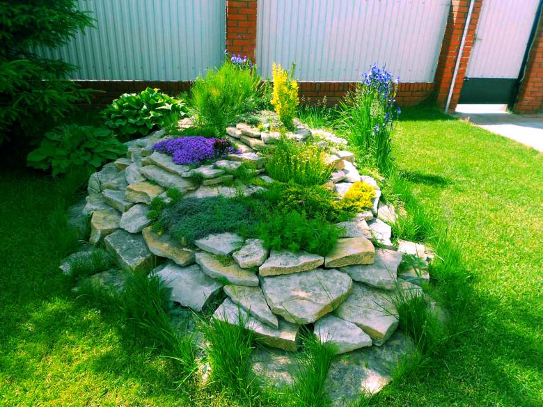 La colline alpine s'intégrera parfaitement dans la zone de loisirs. Pour choisir son emplacement, il est préférable de choisir une zone en pente. La zone libre du terrain est soigneusement débarrassée de la végétation, il est important d'enlever les restes des systèmes racinaires du sol et à cet endroit est creusée une excavation peu profonde de 40-50 cm.