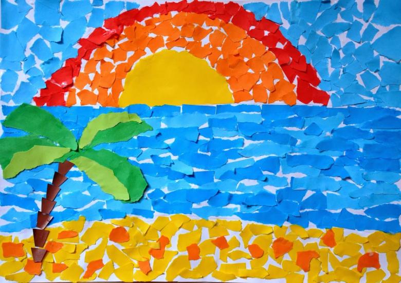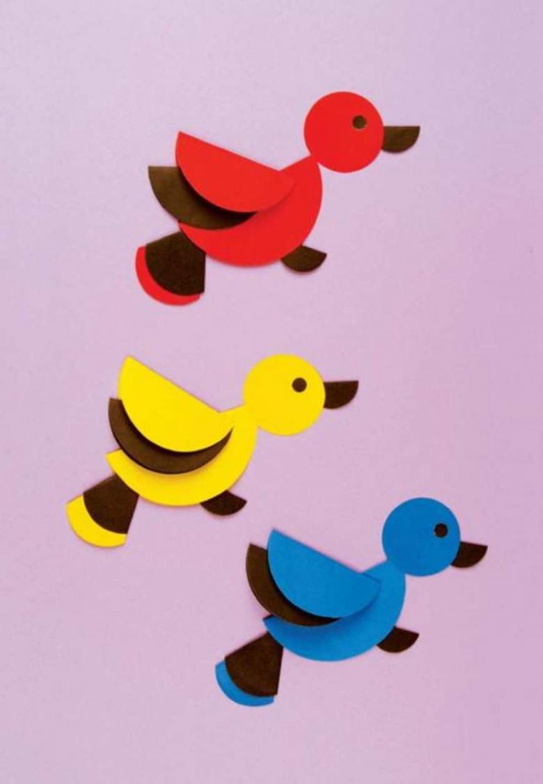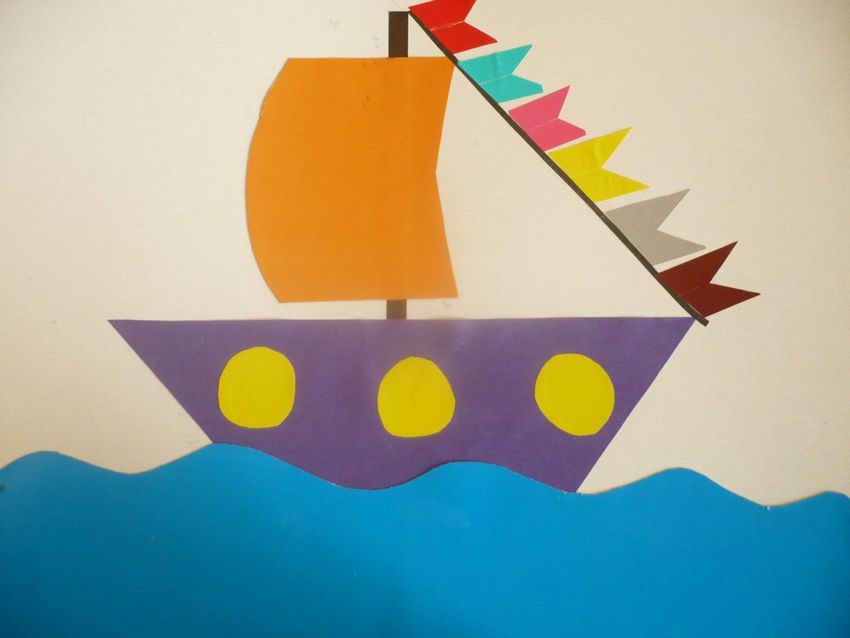 Une colonne distincte est consacrée à l'application de papier coloré, car les enfants y apprennent la diligence, la persévérance et la patience. Malgré la simplicité et l'accessibilité apparentes, les enfants sont très attentifs lorsqu'ils collent des figurines sur n'importe quel support. L'apprentissage peut commencer dès l'âge de 2 ans.