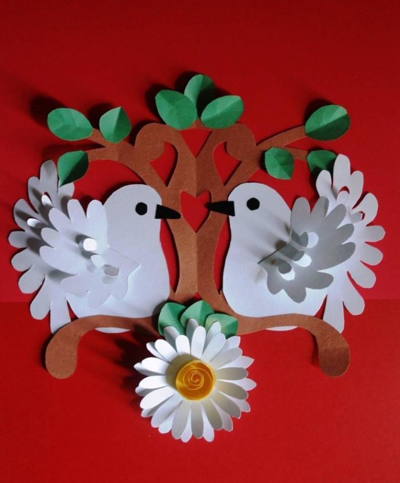Un type relativement simple et accessible aux enfants. L'élément est découpé dans le matériau sélectionné. Il est collé sur la base.