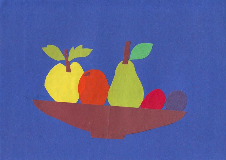 - L'enfant reçoit les éléments d'application préparés. L'enfant doit découper un vase, une pomme, une poire et une pastèque ;