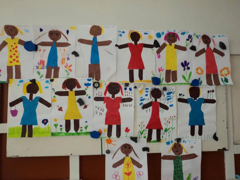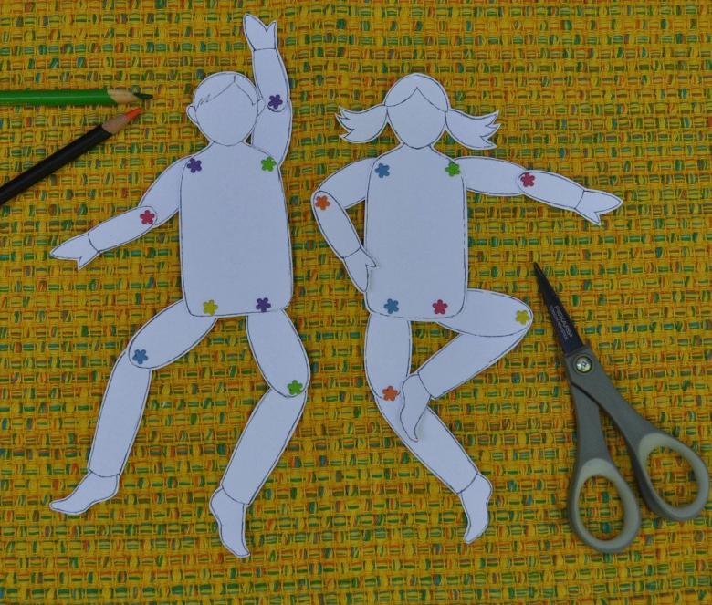 - L'enfant prend l'organe et le colle sur le pochoir humain pour l'appliquer.