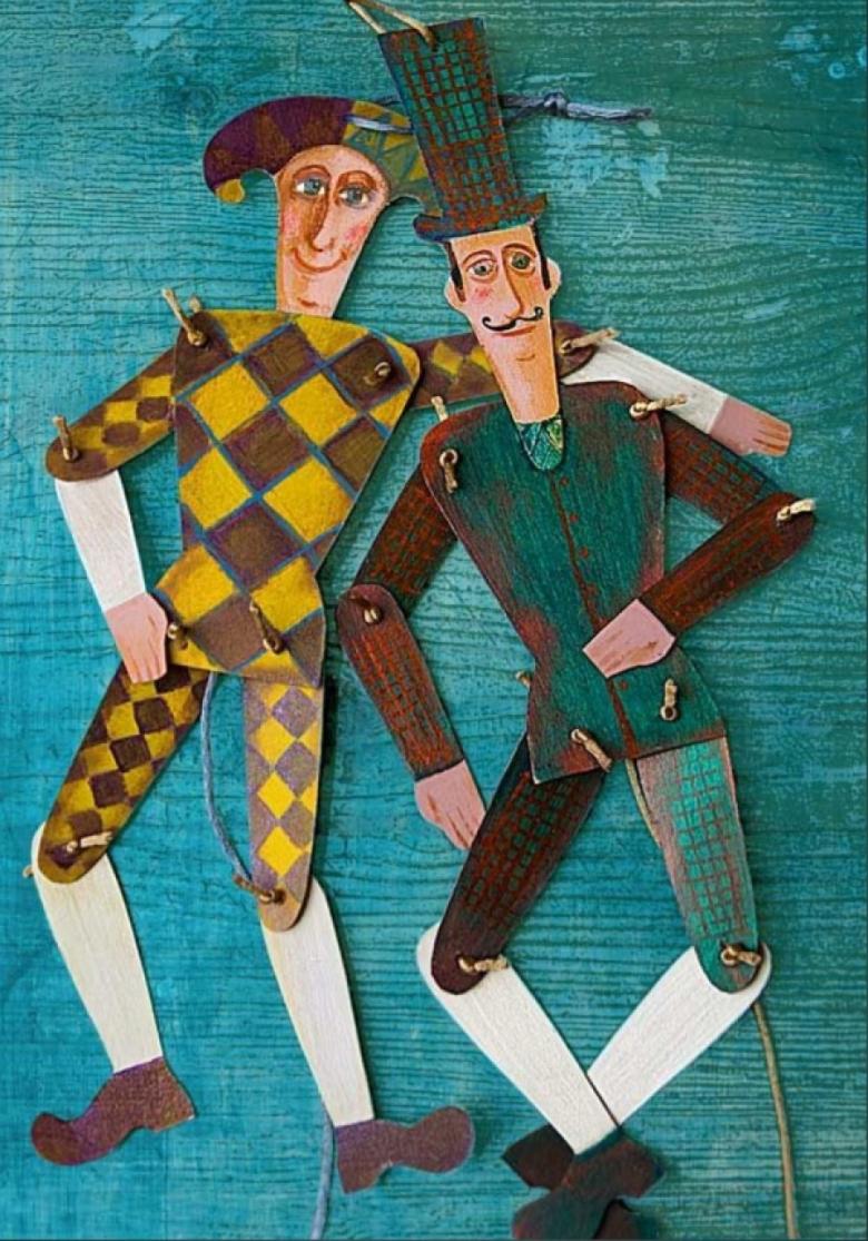 La version la plus simple de l'applique humaine est constituée de formes géométriques. Cette technique permet de développer l'imagination de l'enfant. Les éléments de base utilisés sont le carré, le triangle, le cercle et le rectangle.