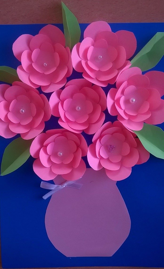 L'une des applications florales les plus simples et les plus rapides est réalisée à partir de papier de couleur sur une feuille de carton. Vous pouvez créer votre propre modèle ou l'imprimer à partir d'Internet. Pour cette activité artisanale, vous devez vous préparer :