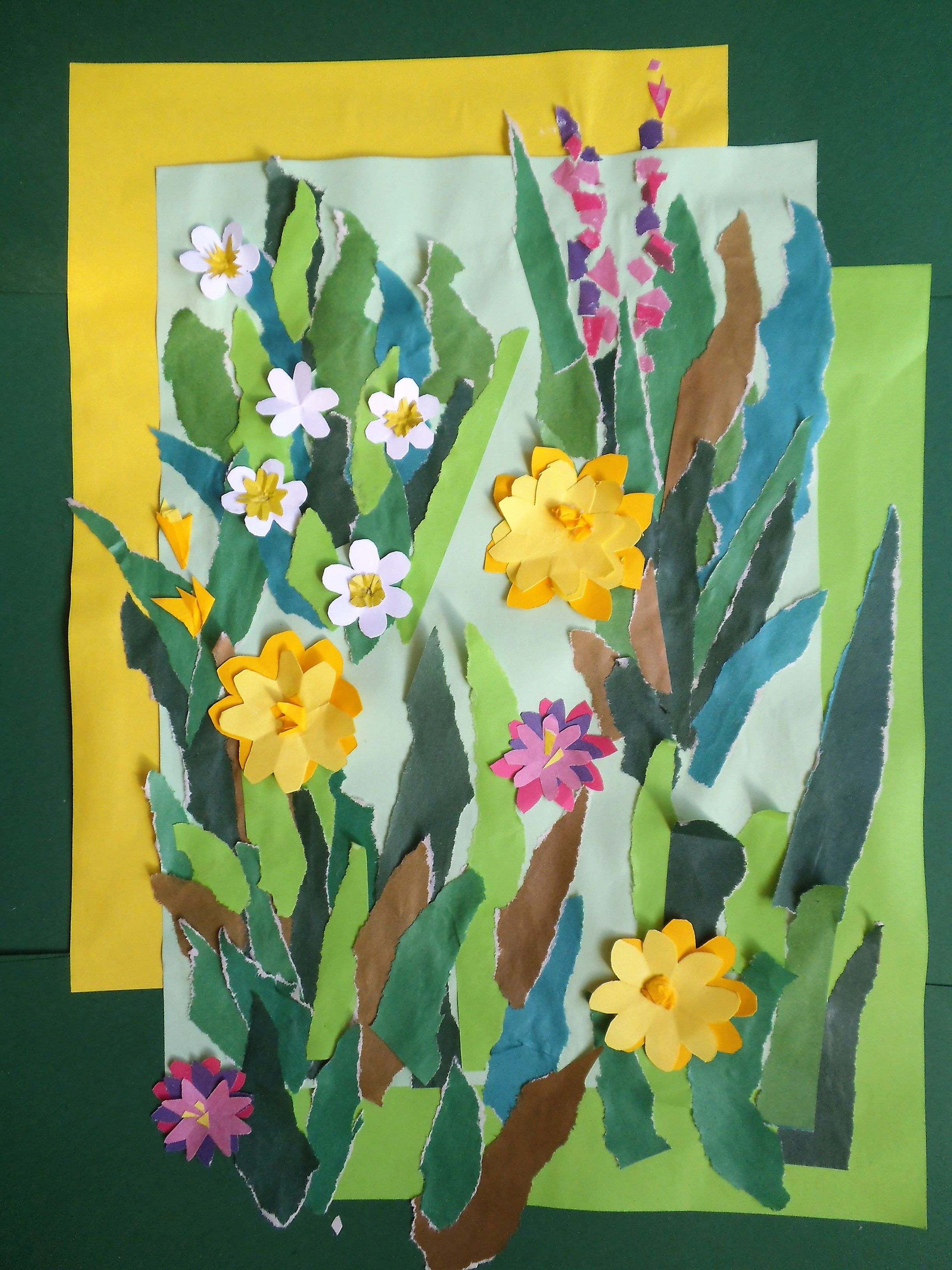- Collez les tiges, les feuilles et les fleurs sur le carton.
