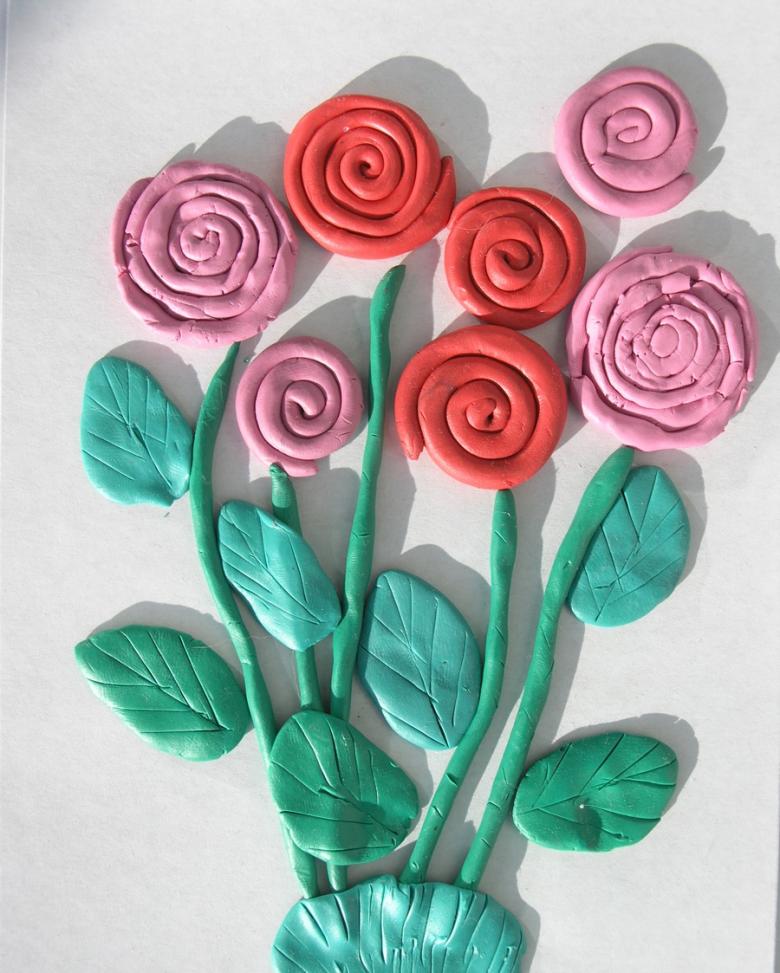 Il est également judicieux de fabriquer un vase avec des fleurs en pâte à modeler et des baies séchées ou des fleurs séchées. Les applications sur le thème des fleurs peuvent être réalisées à partir de divers matériaux issus de la nature ou de l'artisanat, pour autant que vous fassiez preuve d'imagination et que vous y consacriez du temps.