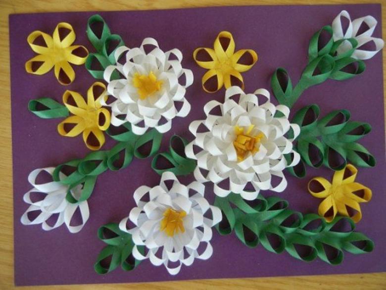 Applications de fleurs à partir de papier de couleur, de tissu, de matériaux improvisés - ateliers avec photos et instructions pas à pas