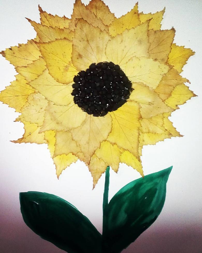 Les éléments de base peuvent être réalisés en papier coloré ou en pâte à modeler ou être finis avec des peintures et des crayons, tout dépend de votre imagination et de la composition elle-même. Les matériaux naturels pour les applications de fleurs d'automne se combinent également très bien avec divers matériaux improvisés.