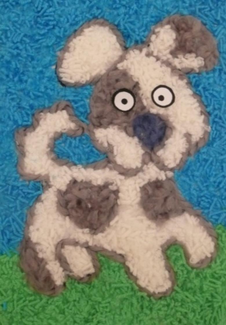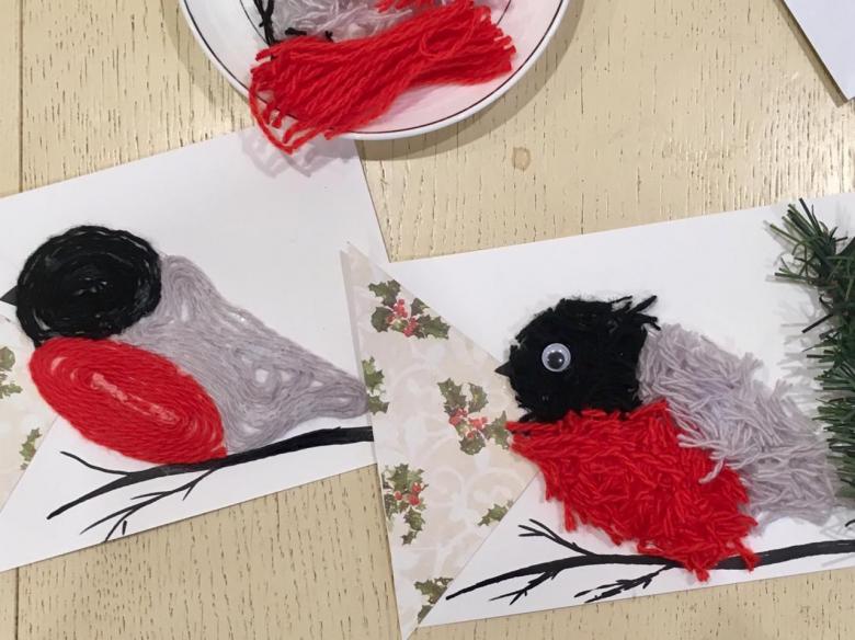 Vous aurez également besoin de fils de laine, de ciseaux, de colle PVA, d'un morceau de carton et de deux perles noires.