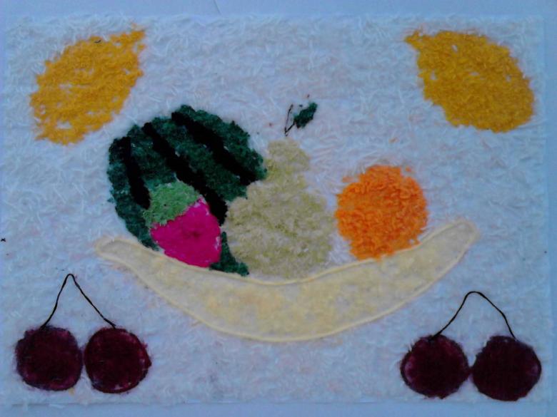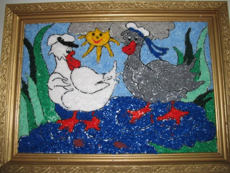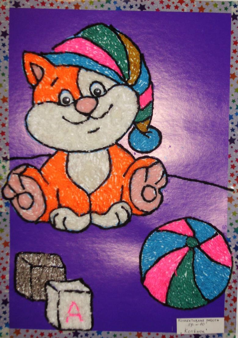 Les enfants de la maternelle utilisent surtout du fil coupé ou torsadé, réalisé en serpentin ou en lignes. Les enfants réalisent le travail en représentant quelques objets ou des compositions simples :