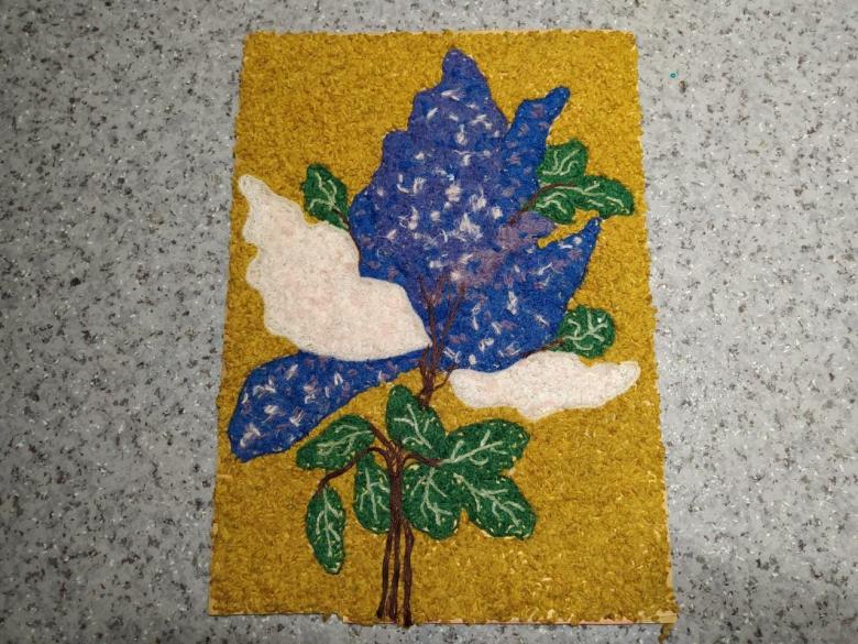 - Coupez le fil de laine en petits morceaux.