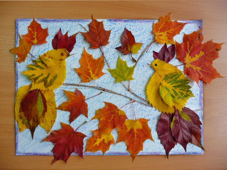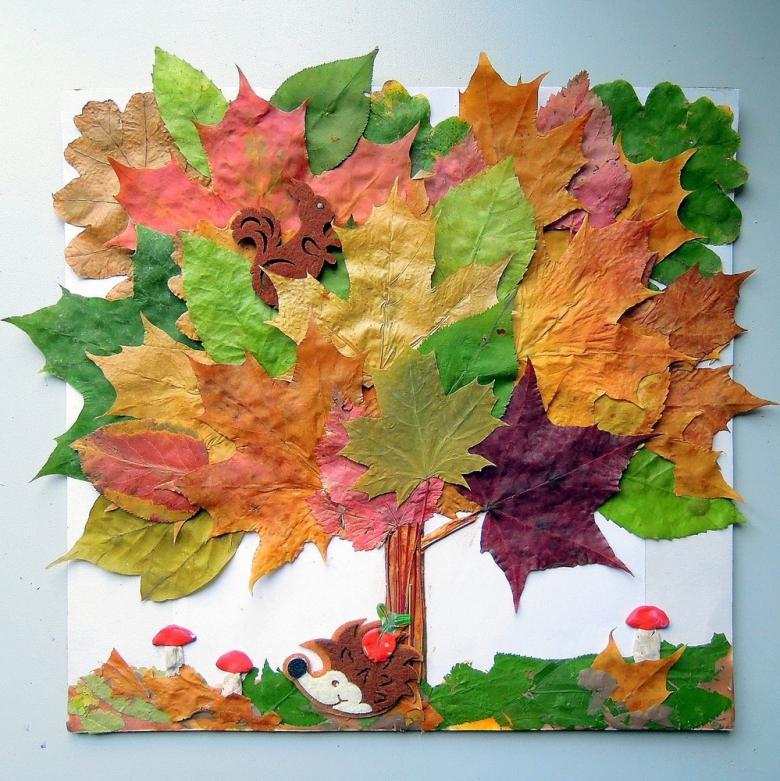 Pour les applications, vous pouvez utiliser différents matériaux, mais le plus souvent il s'agit de papier, qui peut être remplacé par des feuilles d'automne. Pour faciliter le travail d'un enfant d'âge préscolaire et primaire avec des matériaux naturels, il est préférable de ne pas les amener à une sécheresse parfaite, ce qui évite l'effritement.