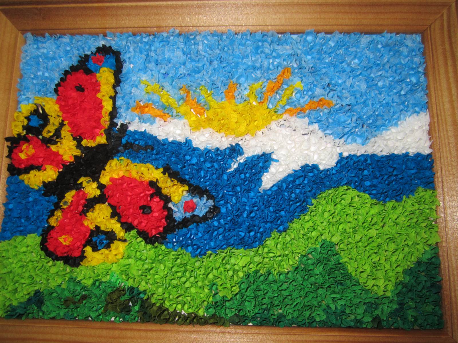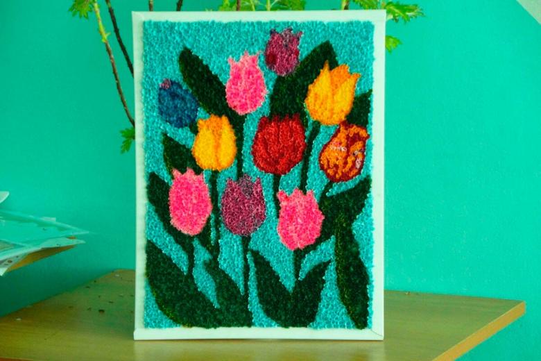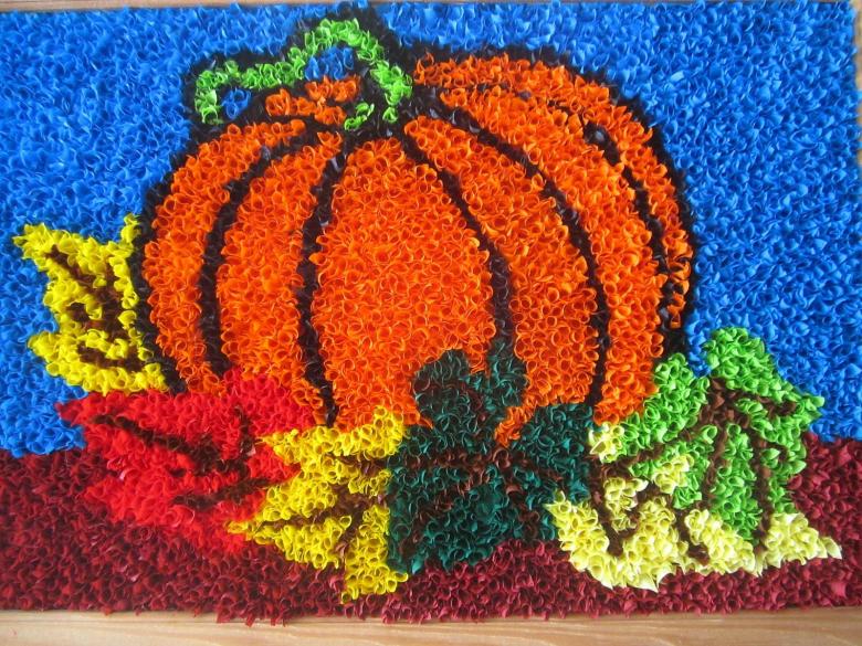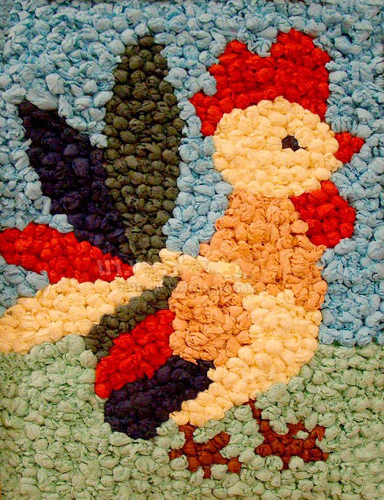 Le travail avec les serviettes est varié. Pendant le travail, il est possible de créer des grumeaux froissés qui remplissent le motif, de tordre les tubes ou de former des parties volumineuses.