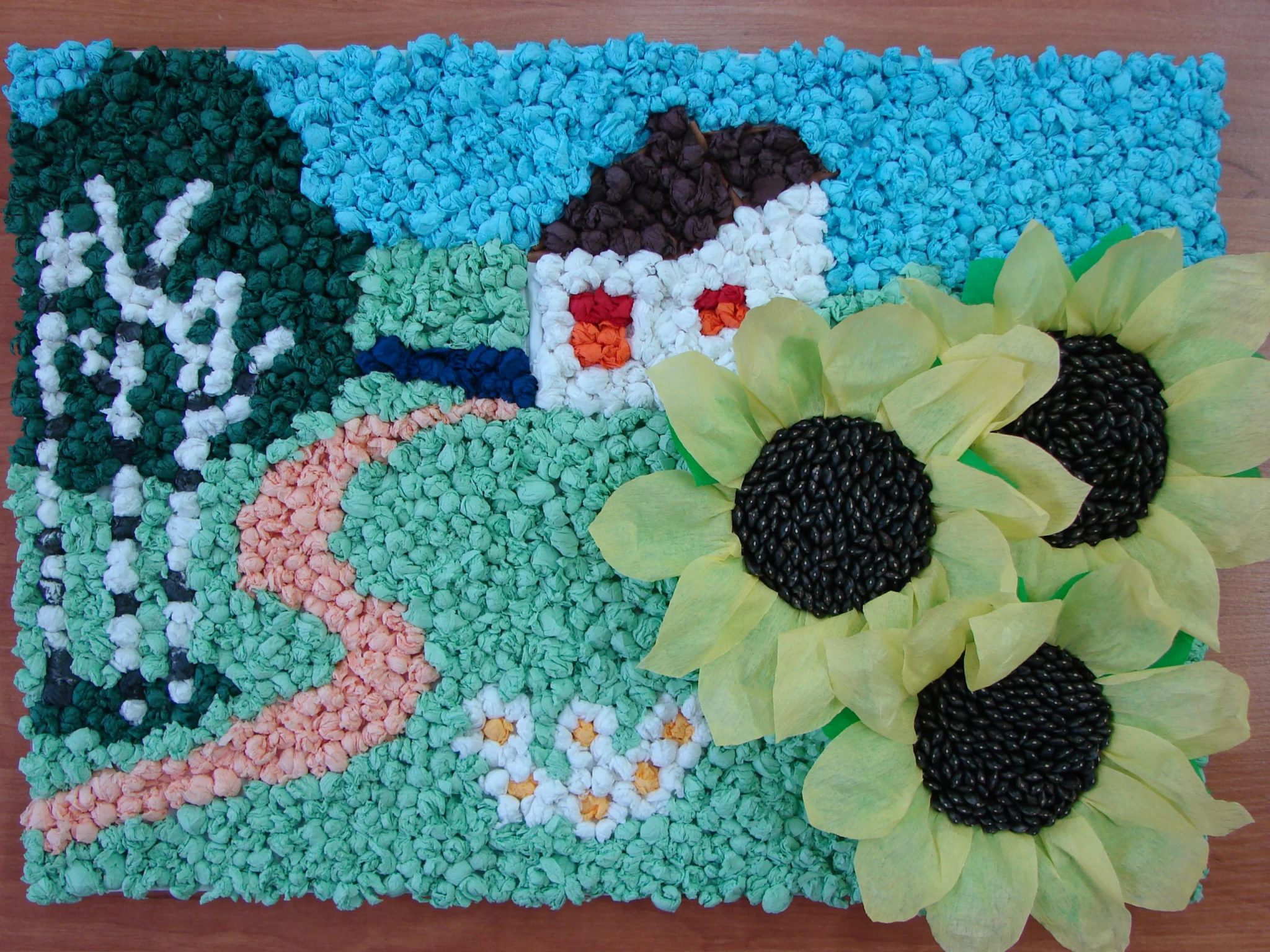- La complexité des travaux varie. En fonction de l'âge des enfants, le travail peut être très simple ou plus compliqué, combinant matériaux et techniques.