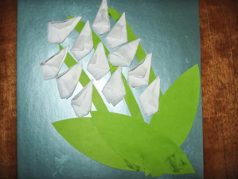 - Préparation du modèle. Pour commencer, un modèle est préparé. Le muguet y sera collé. Il peut s'agir d'une demi-feuille ou d'une feuille A4 de n'importe quelle couleur.