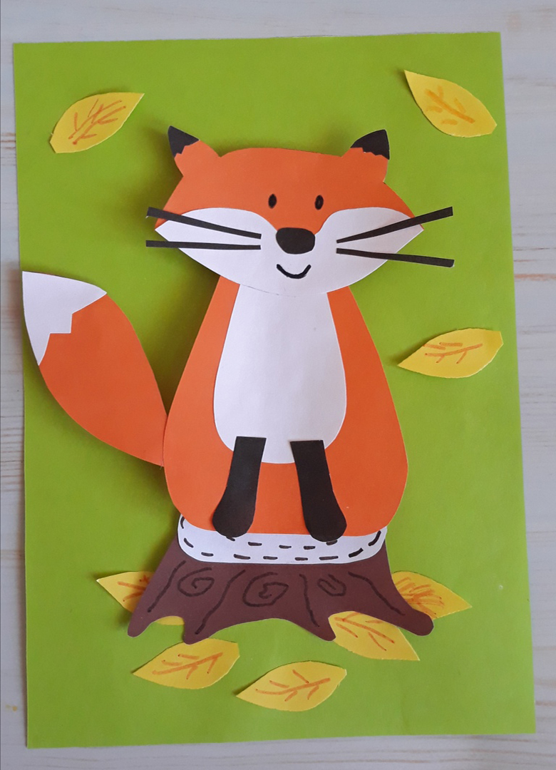 Pour réaliser cet animal, il te faut : du carton orange et noir, des ciseaux, de la colle et des feutres noirs.