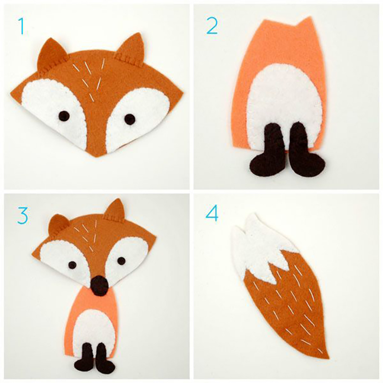 - Placez les pattes en bas (elles peuvent être en une seule pièce ou en 2 pièces pour les pattes avant et arrière séparément). Collez la queue à l'arrière.