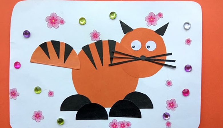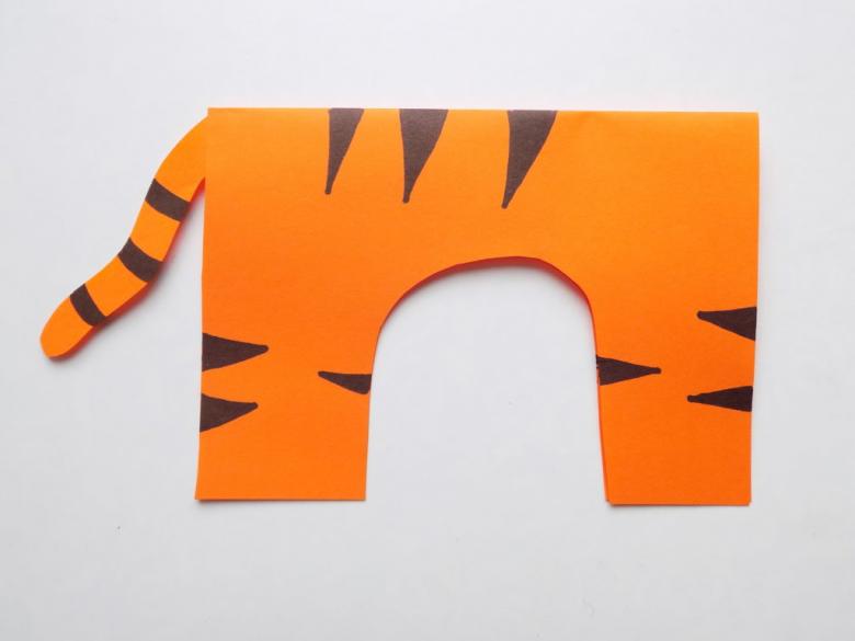 Le tigre est prêt, vous pouvez l'utiliser comme un jouet ou comme décoration pour une carte postale. Pour l'application sur les animaux des pays chauds du groupe plus âgé, la tâche peut être rendue plus difficile en ajoutant la création d'autres habitants de la savane, ainsi que des éléments de végétation.