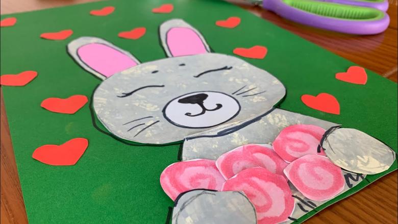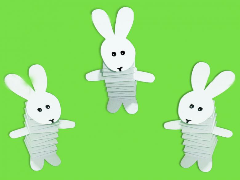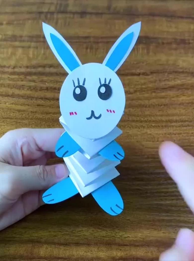 Pour faire du lapin un jouet interactif ou une décoration, vous pouvez attacher une ficelle ou une fine bande de papier parallèle au jouet par l'arrière. Vous pouvez décorer une pièce avec ce bricolage ou le transformer en un jouet à doigts à utiliser pour le cinéma maison. Si vous collez le lapin sur une feuille de papier pliée en deux, cela fait une jolie carte.