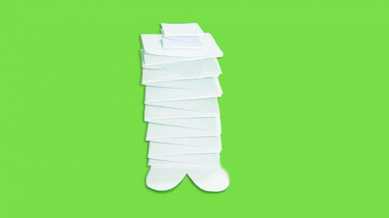 - Collez l'accordéon de deux feuilles ainsi obtenu, appuyez au milieu, pliez en deux et fixez cette position au centre de la pièce avec de la ficelle, un pistolet à agrafes ou de la colle. Utilisez également du ruban adhésif double face.