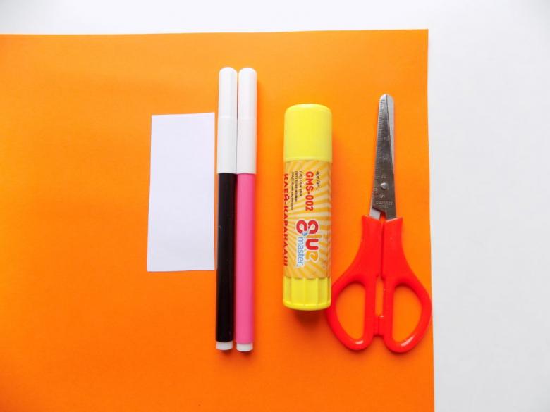 Pour le travail, vous aurez besoin de : papier de couleur, ciseaux, colle, carton de couleur, feutre noir.