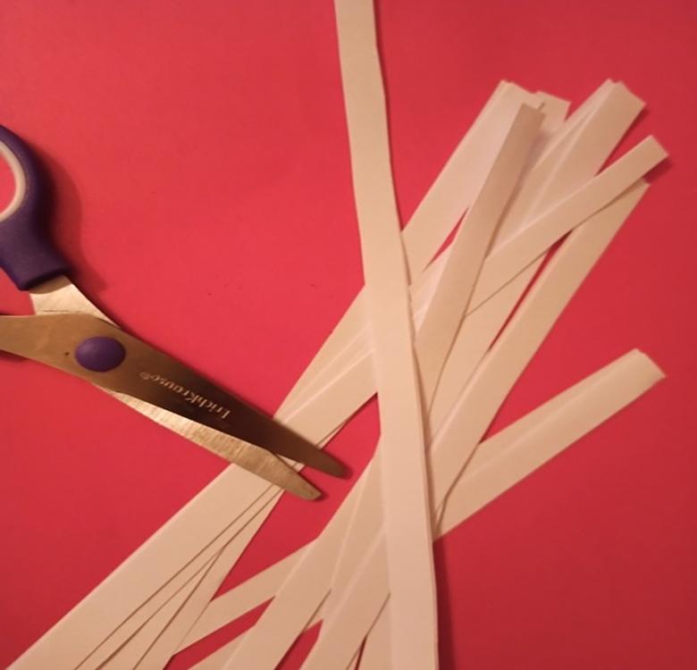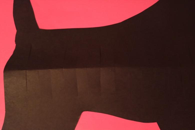 - Découpez dans le papier de fines bandes noires de 1 cm de large.