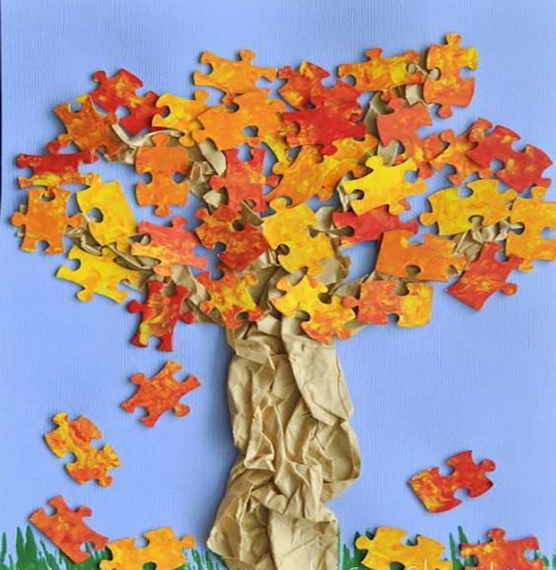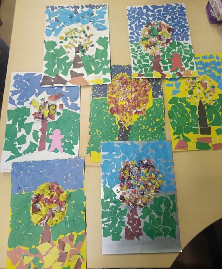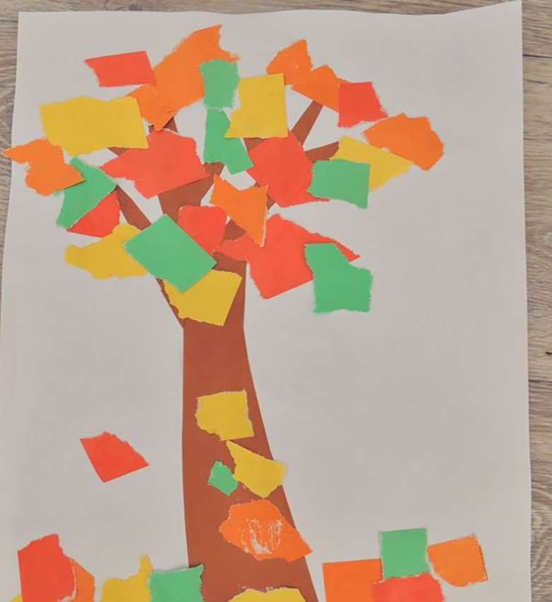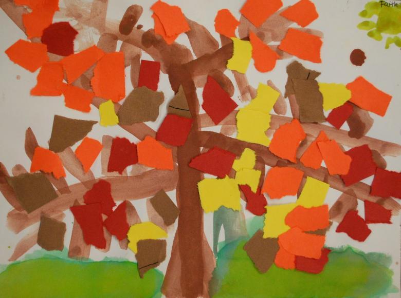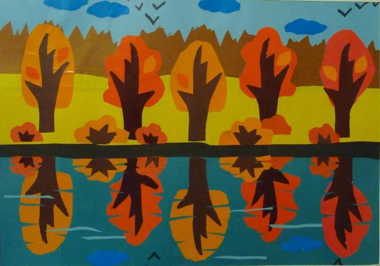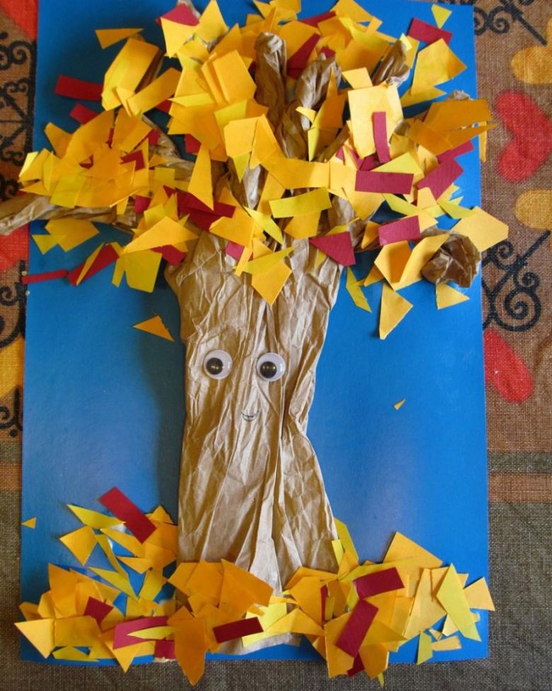L'idée est que tous les objets représentés sont faits de papier de couleur finement déchiré. Même un enfant d'âge préscolaire peut réaliser ce bricolage :