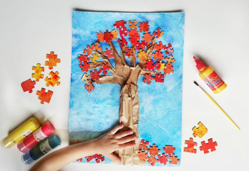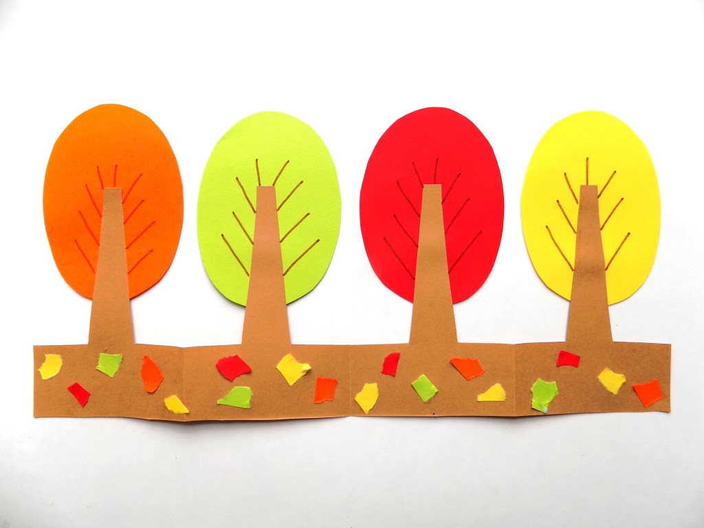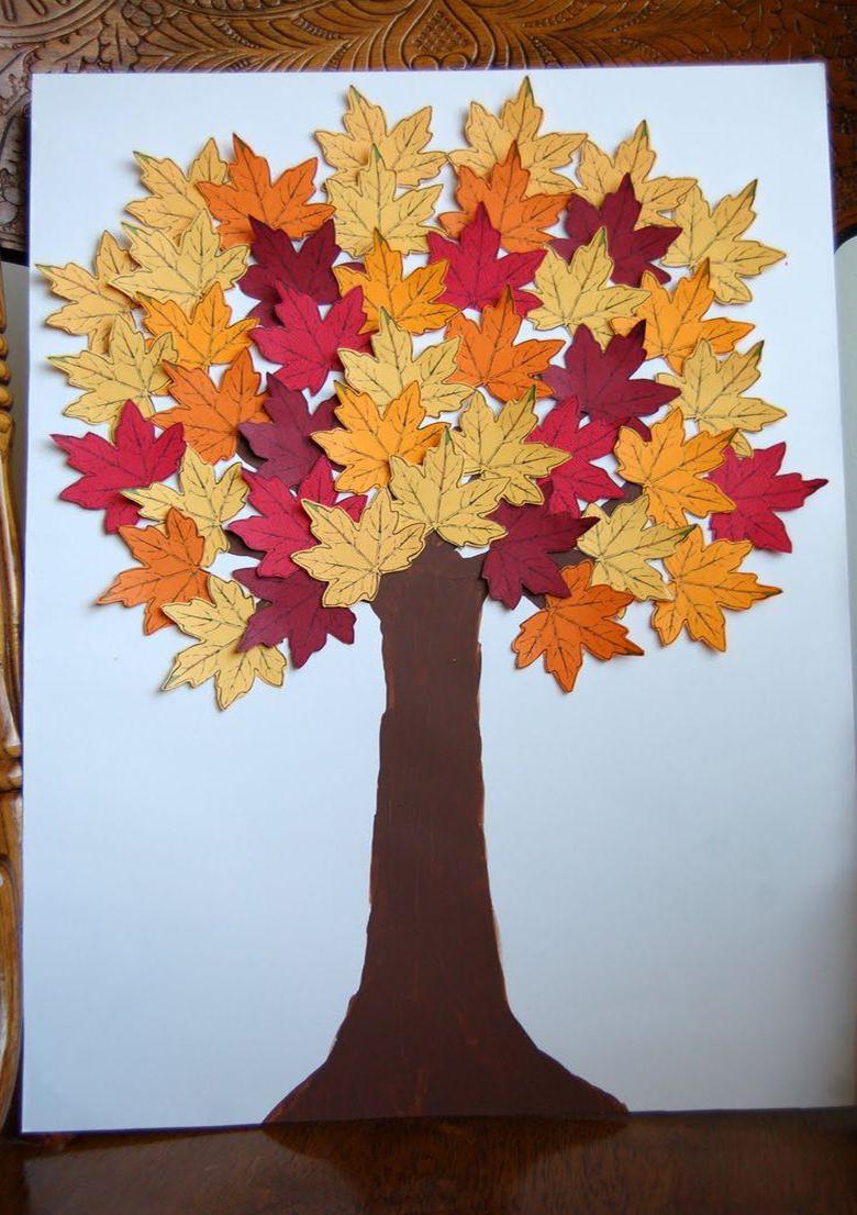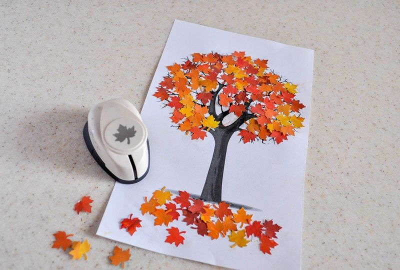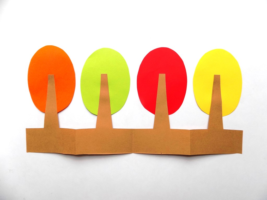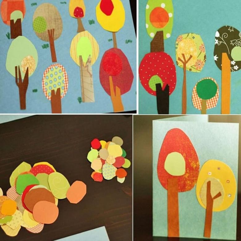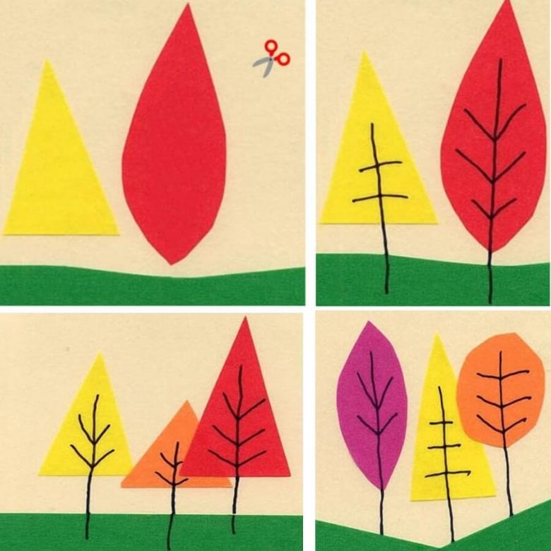 N'utilisez qu'une couleur qui contraste avec son environnement. Préparez suffisamment d'arbres dans une variété de teintes. Prenez du jaune, de l'orange, du pistache, du cramoisi, de l'olive. Dessinez le contour du bois prévu sur l'envers de la feuille, puis découpez soigneusement.