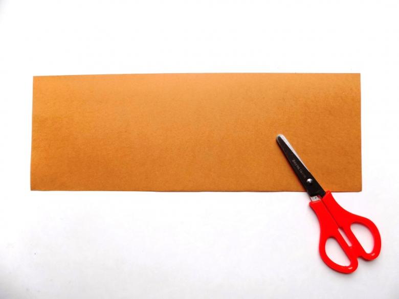 Une technique standard pour créer une composition d'automne. Prenez une feuille de la teinte souhaitée qui s'avère particulièrement adaptée. Collez une bande le long de la base, en modelant le sol. Un ton brunâtre ou herbeux fera l'affaire.