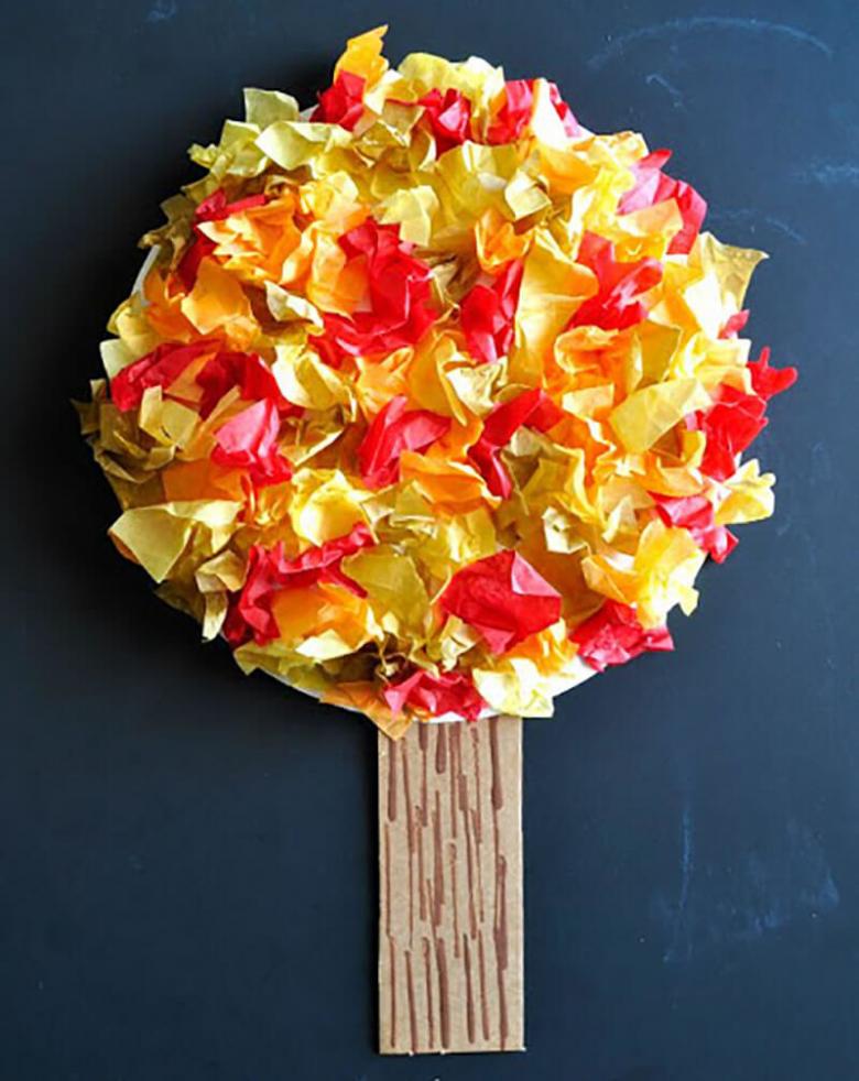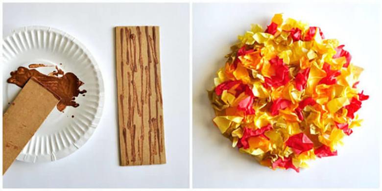 - Placez sur les arbres pour former des feuilles. Collez tout ensemble.