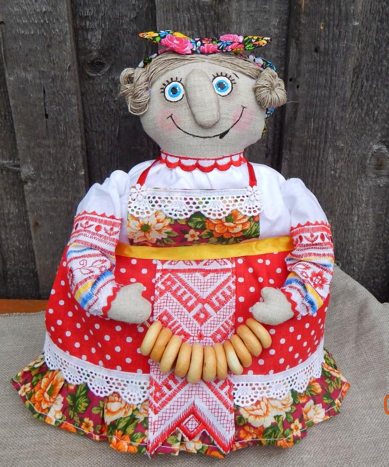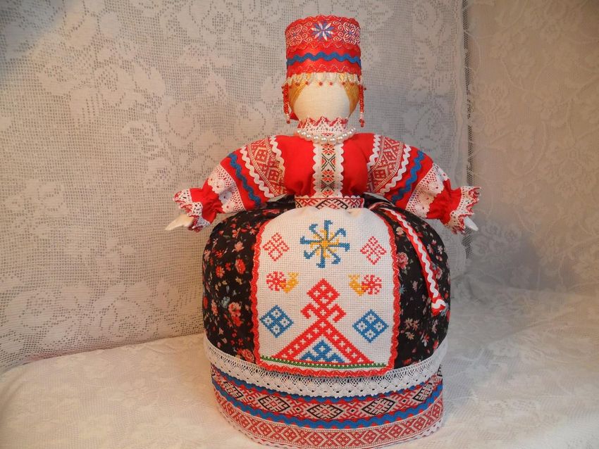 Dans le vieux baba slave pour la bouilloire avec ses mains - les motifs des produits sont de nature légèrement différente, c'est pourquoi vous devez accorder une attention particulière aux matériaux de fabrication, au processus, à la décoration et à la palette de couleurs.