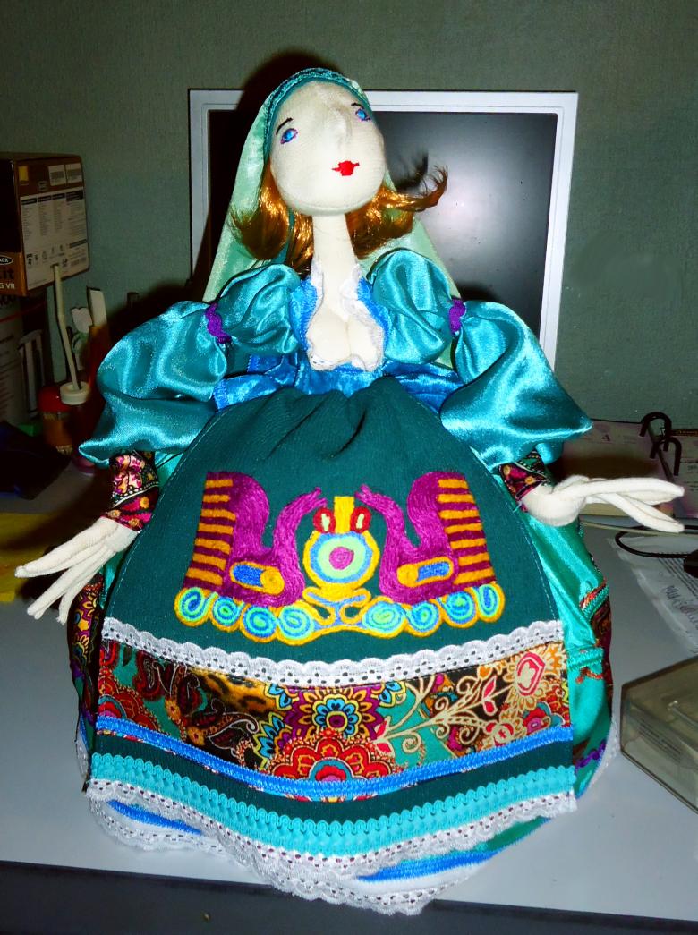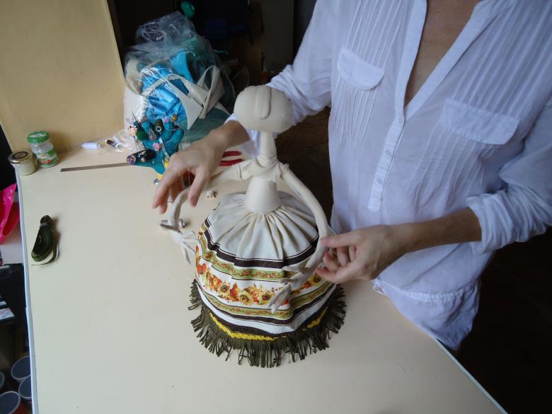 Sur la base du sac a été cousu le haut de la jupe, décorée de divers matériaux et images. La baba théière était très honorée par des décorations et des symboles de sa famille et de son clan.