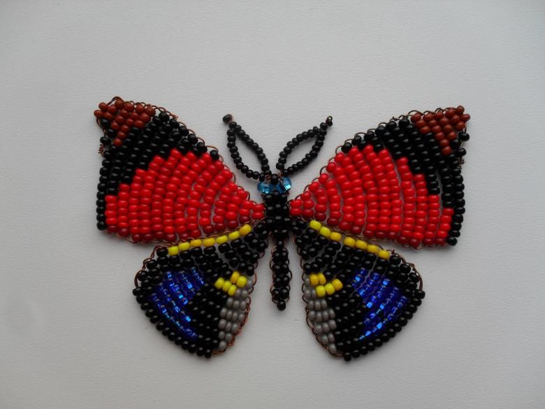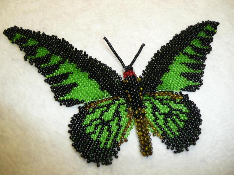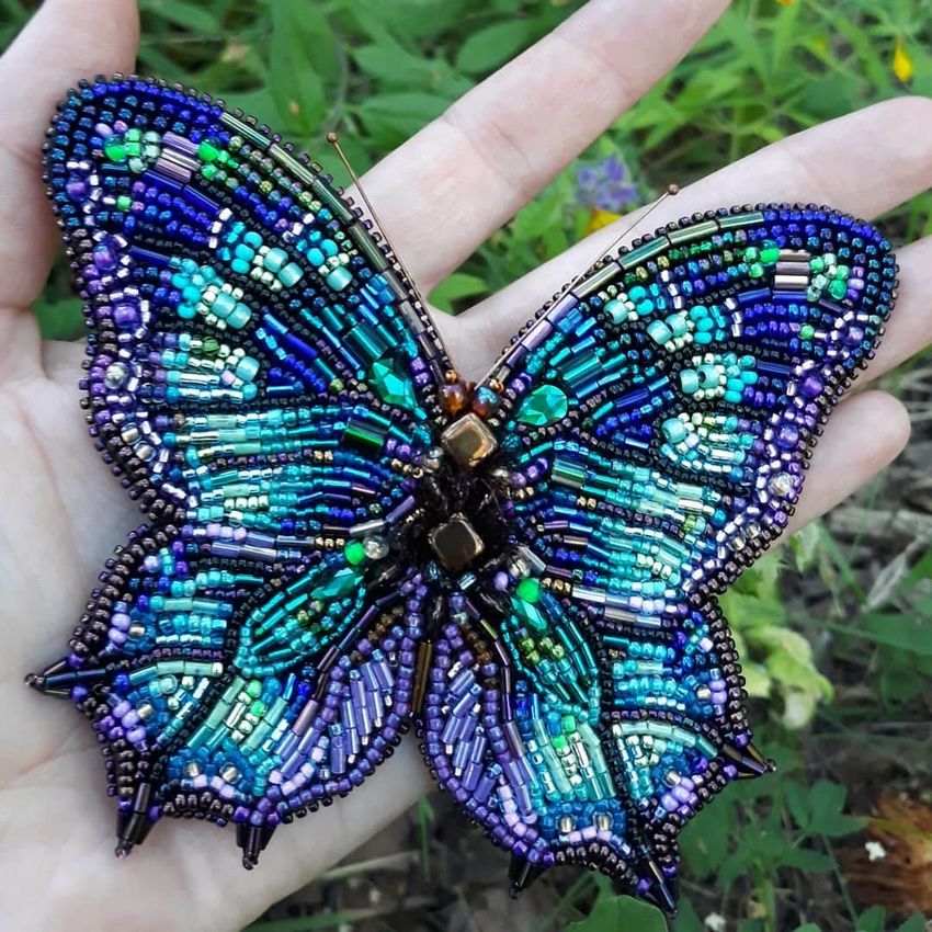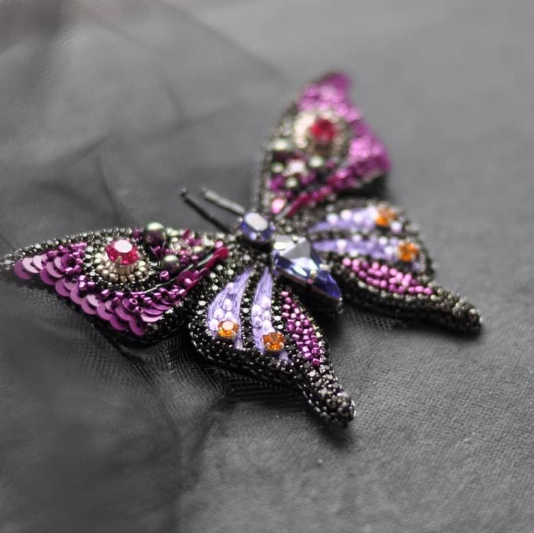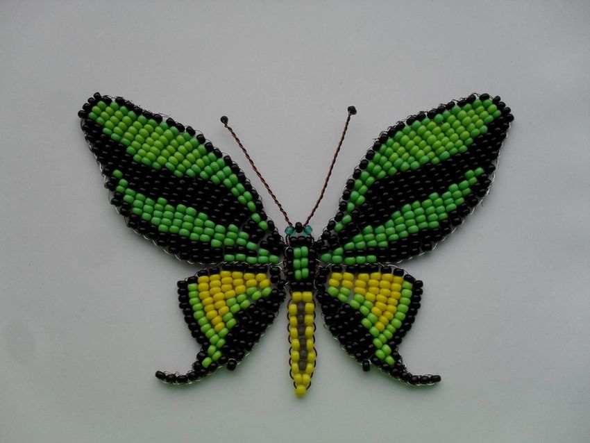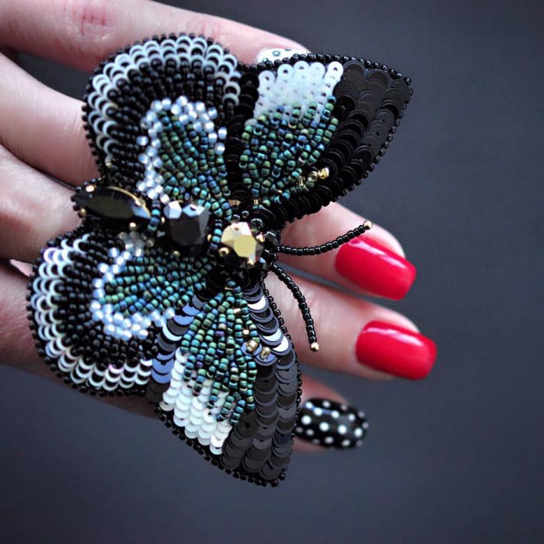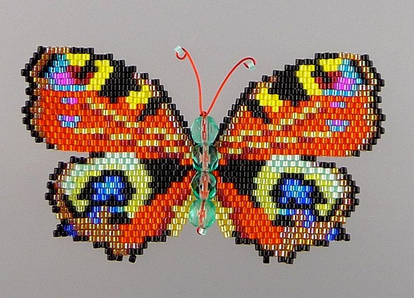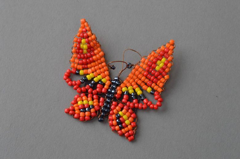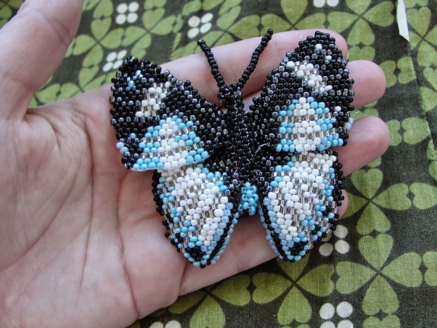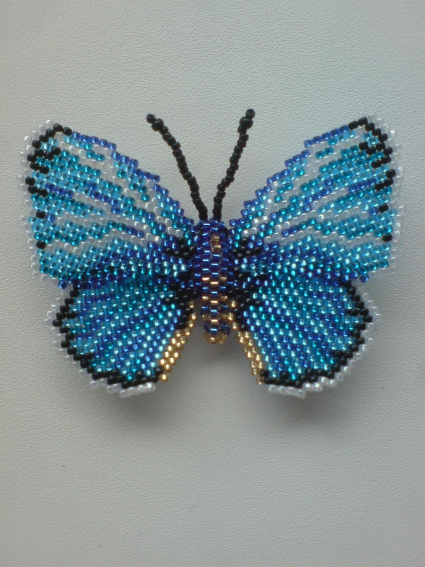 Pour réaliser une broche tridimensionnelle à la mode à partir d'un papillon perlé, on peut y fixer un fermoir. Un insecte perlé peut être attaché à une simple épingle à cheveux. Vous pouvez également fabriquer un élastique et le décorer avec un papillon coloré et volumineux.