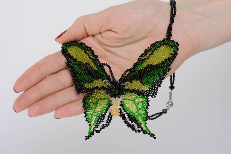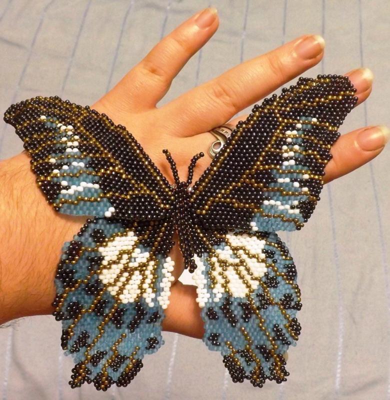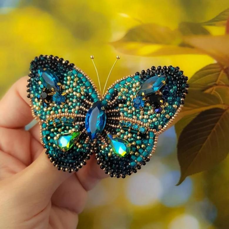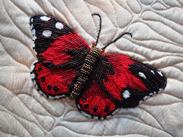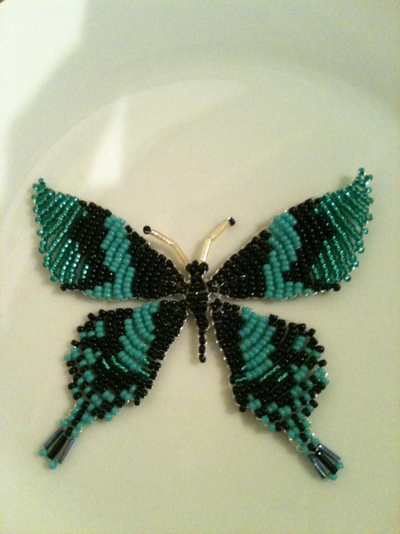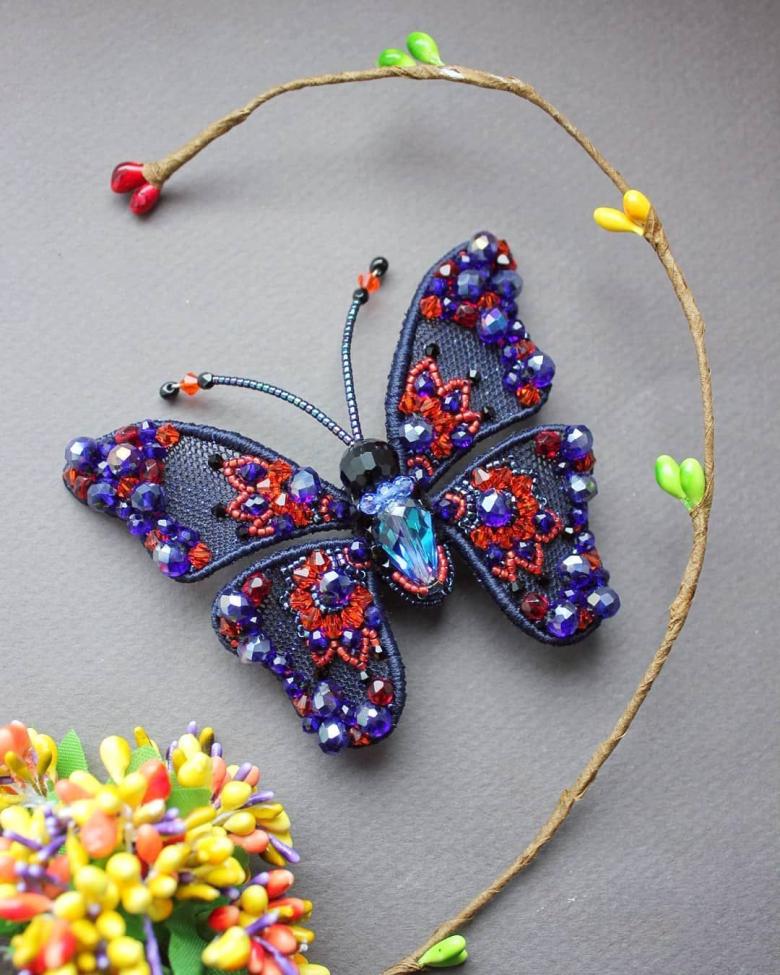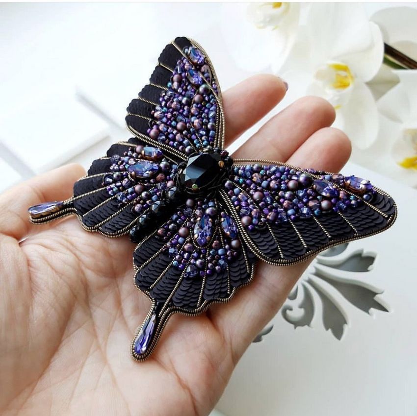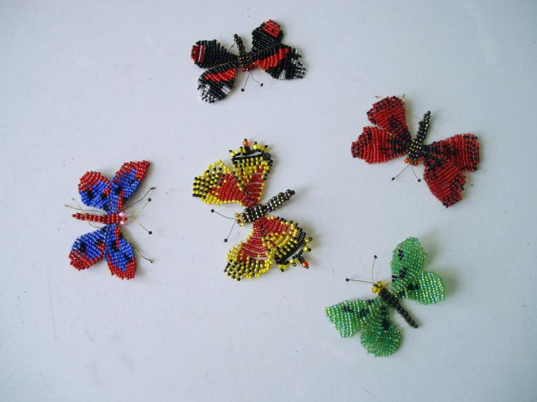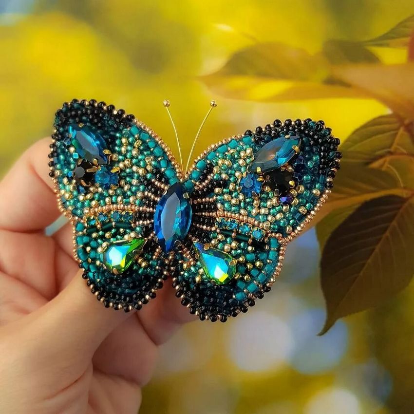 Pour réaliser une broche tridimensionnelle à la mode à partir d'un papillon perlé, on peut y fixer un fermoir. Un insecte perlé peut être attaché à une simple épingle à cheveux. Vous pouvez également fabriquer un élastique et le décorer avec un papillon coloré et volumineux.