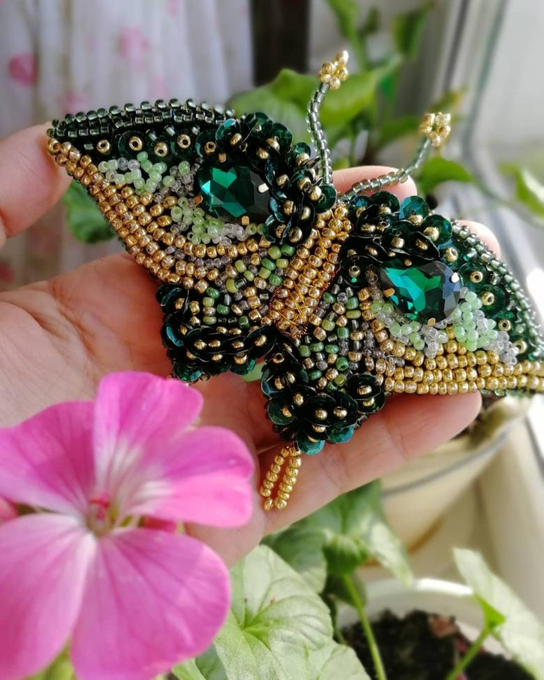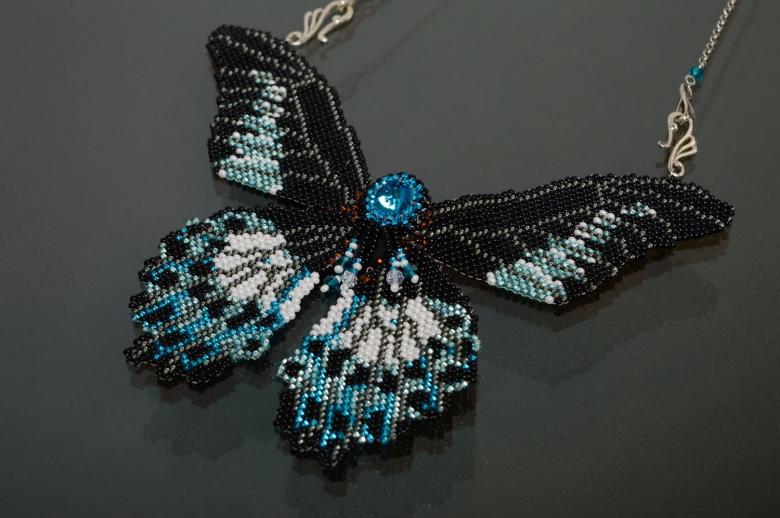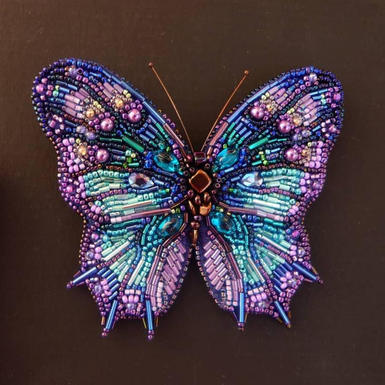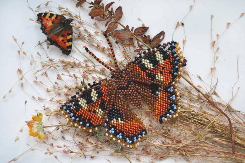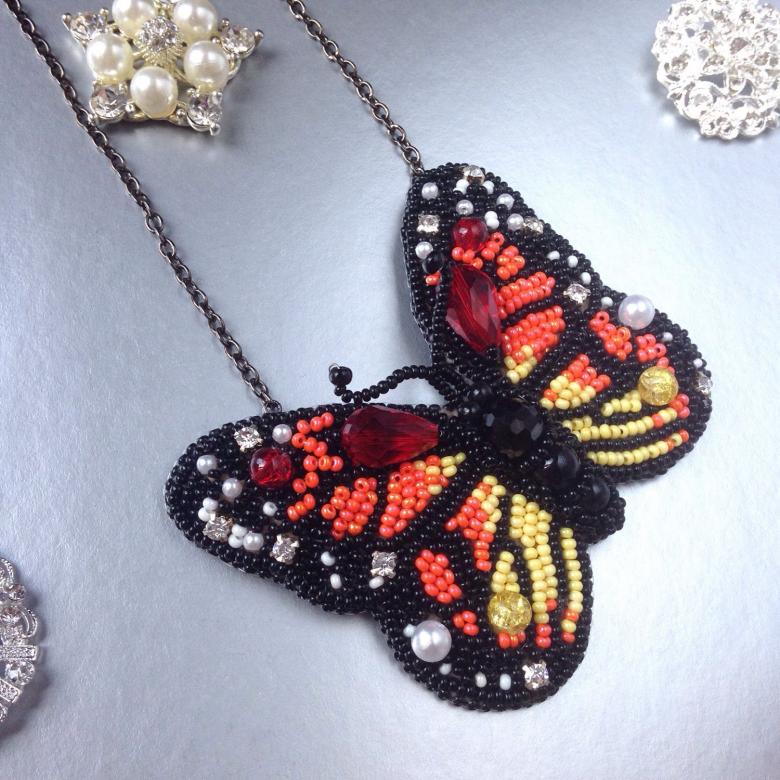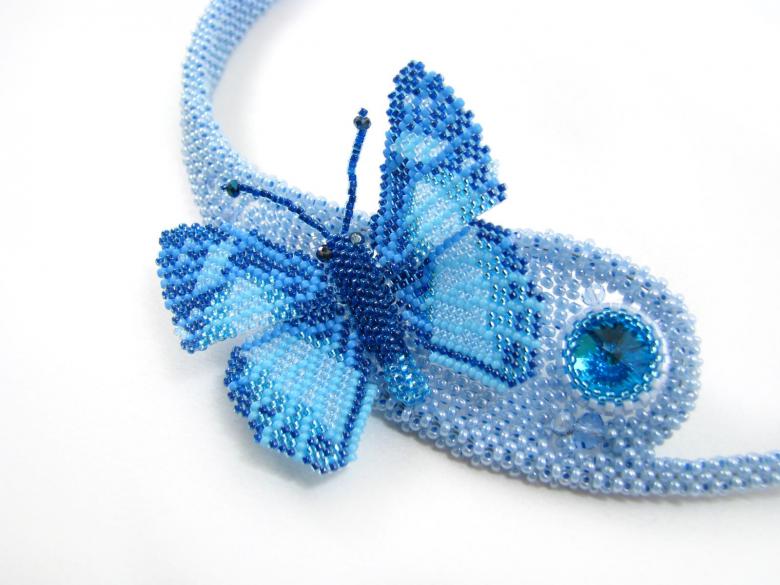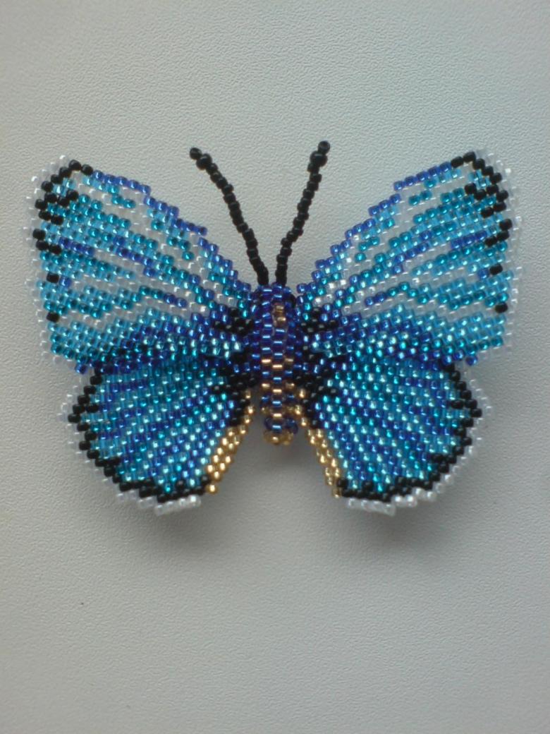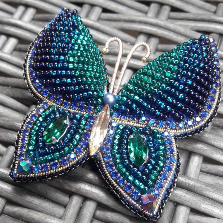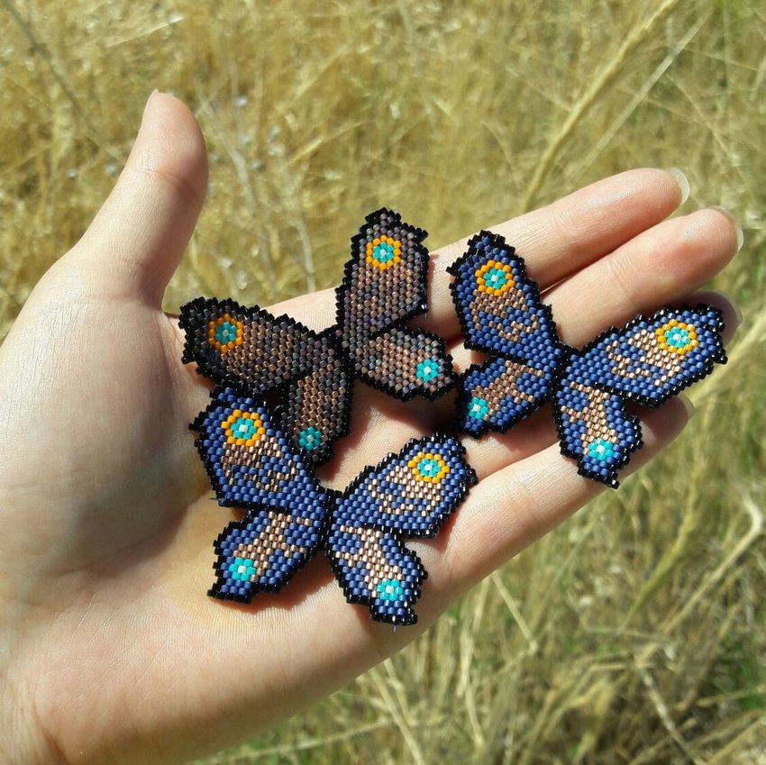 Pour réaliser une broche tridimensionnelle à la mode à partir d'un papillon perlé, on peut y fixer un fermoir. Un insecte perlé peut être attaché à une simple épingle à cheveux. Vous pouvez également fabriquer un élastique et le décorer avec un papillon coloré et volumineux.