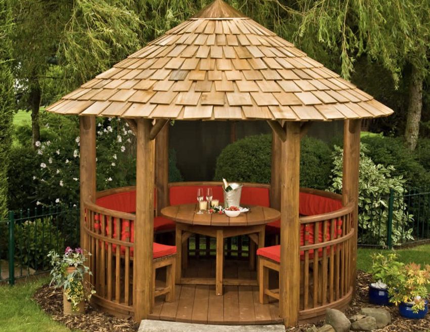 Examinez attentivement les dessins et les photographies de pavillons pour villas, construits de leurs propres mains, et décidez quel type de structure vous préférez, et ce que vous pouvez faire vous-même.