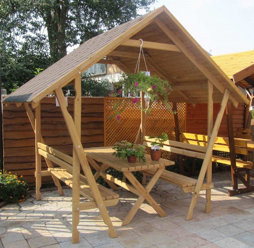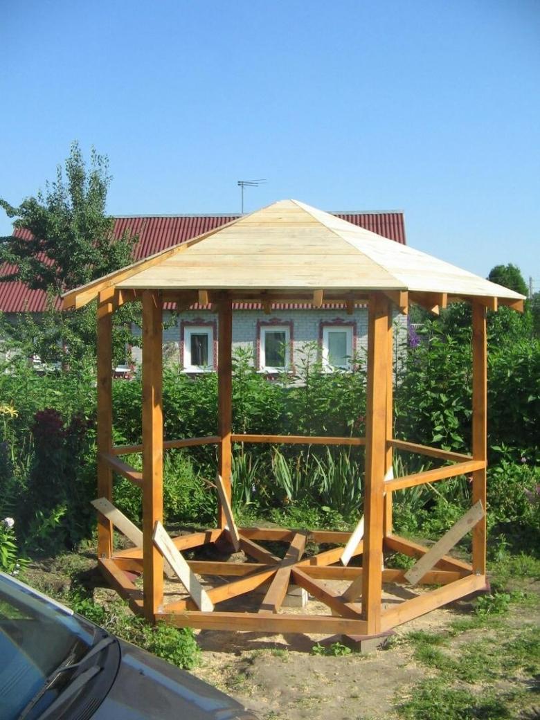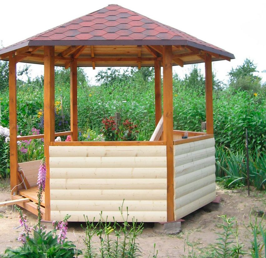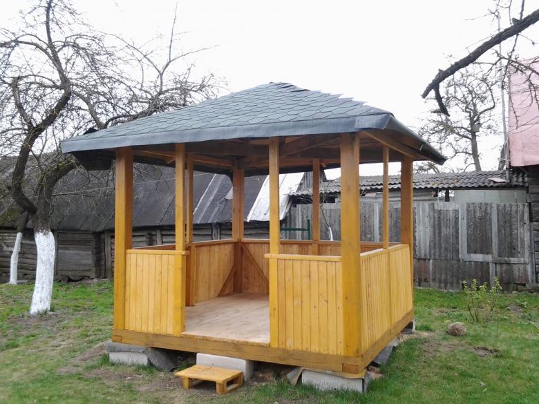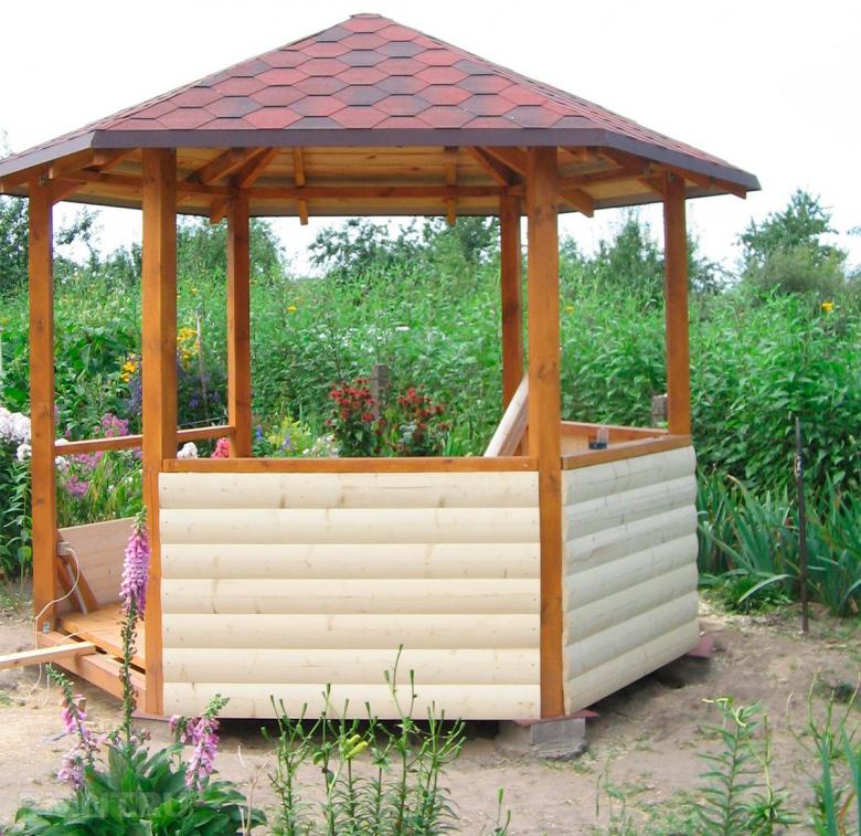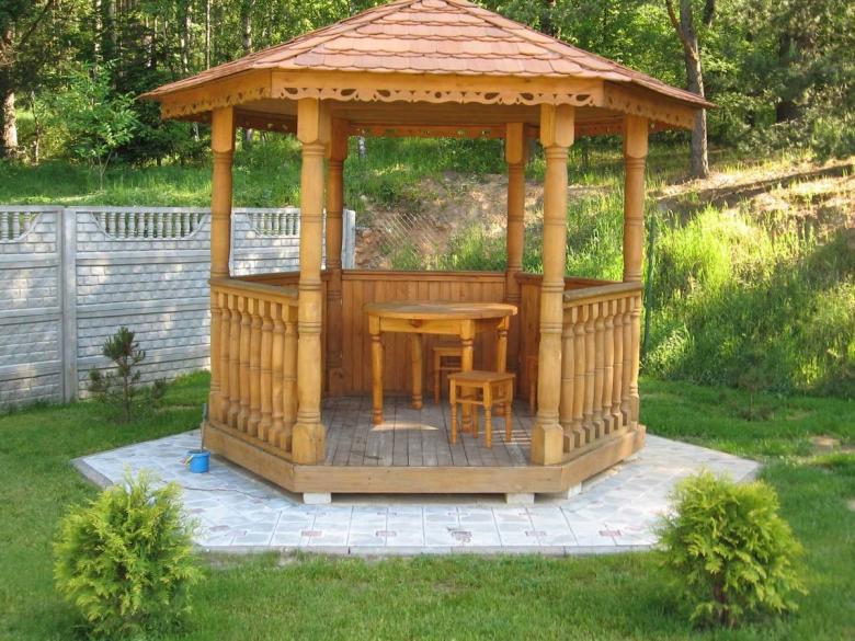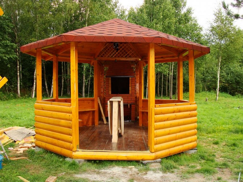 Le bois est le matériau le plus facile à travailler. Un avantage indéniable est que la construction en bois ne nécessite pas de fondation capitale. Certains artisans parviennent à utiliser même de vieux pneus de voiture comme support et alignement du site pour le gazebo, ce qui permet au propriétaire du site d'économiser de l'argent.