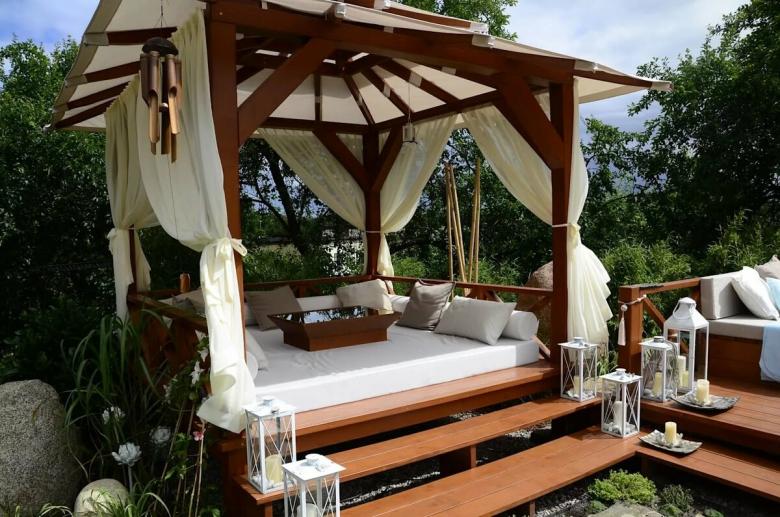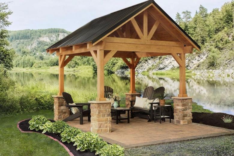 Les vacances à la campagne sont rendues beaucoup plus agréables par la présence d'un gazebo dans l'arrière-cour.
