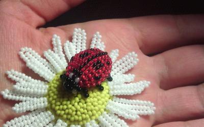 Camomille perlée - exemples de photos montrant comment tisser un bel objet artisanal