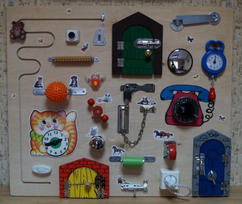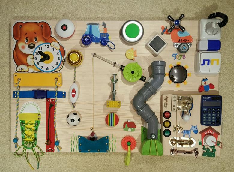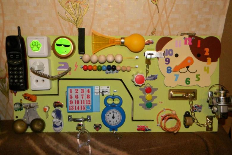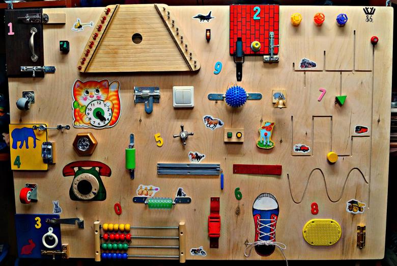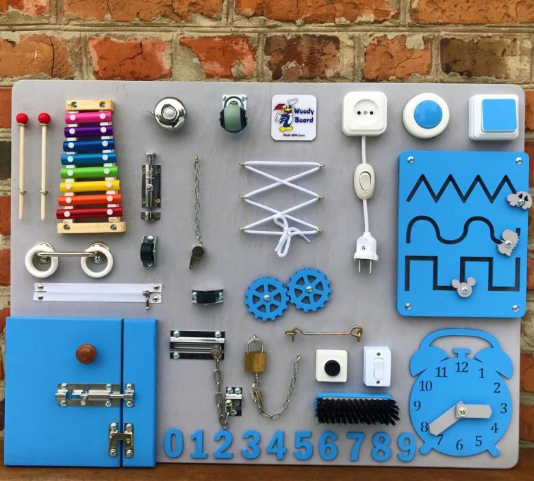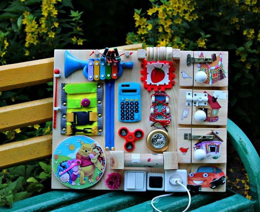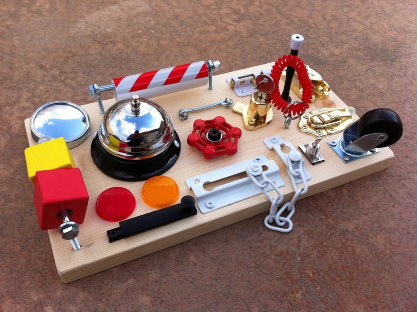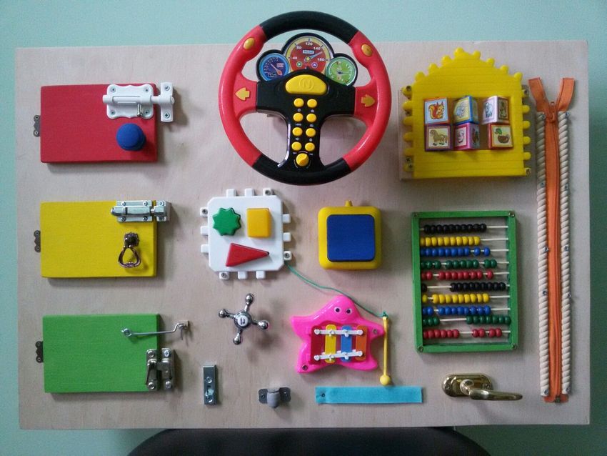 Le tableau d'activité peut être de n'importe quelle forme et de n'importe quelle taille, composé de nombreux éléments et compléments choisis par les parents. Bien sûr, il est préférable de remplir le jouet en fonction du sexe, de l'âge et des préférences de l'enfant, et si l'enfant est très jeune, il faut alors essayer plusieurs options.
