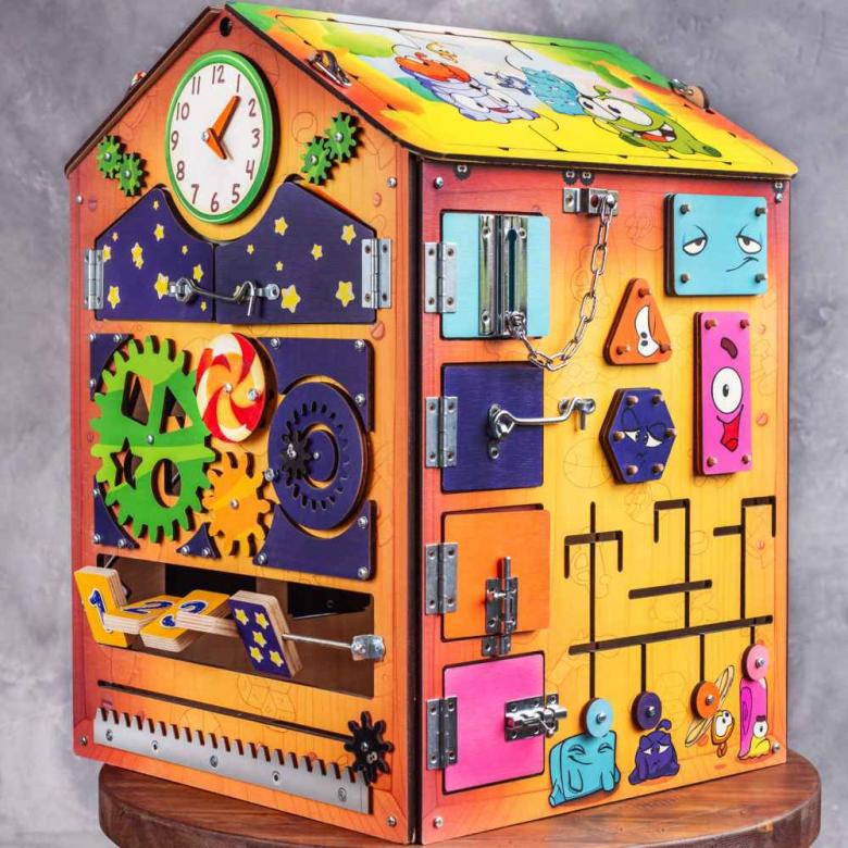 Tous les éléments du biboard peuvent être changés ou combinés par groupes, ce qui permet de modifier progressivement le modèle et de l'adapter à l'âge de l'enfant. Grâce à cela, un jouet intéressant et réellement éducatif restera toujours pertinent et ne lassera pas rapidement votre enfant, qui se développera et apprendra par le jeu.