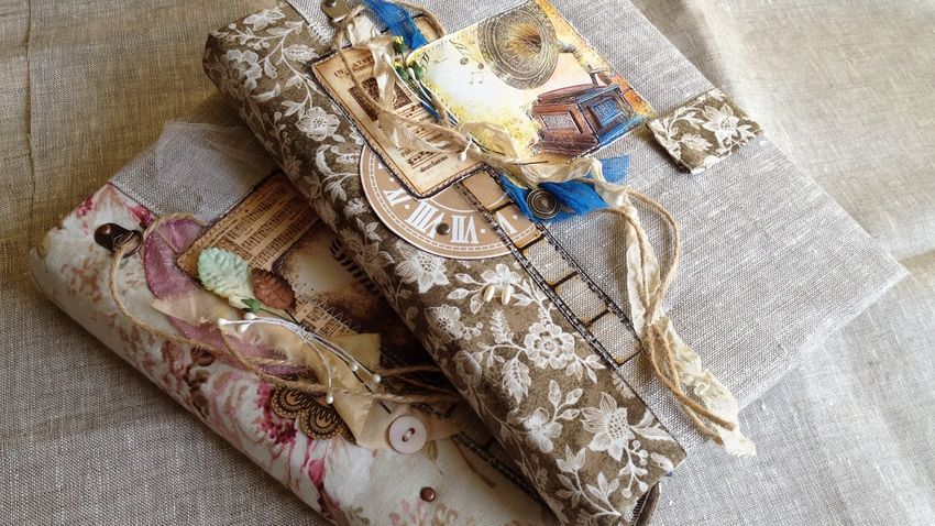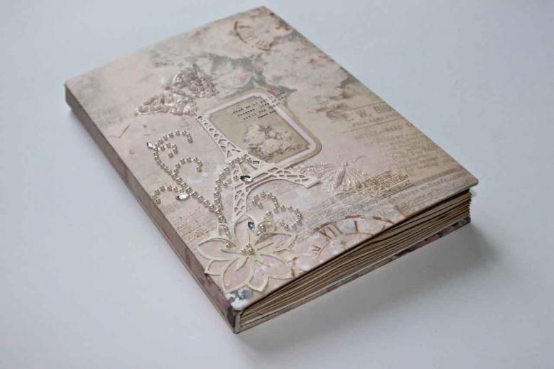 Les cahiers cousus et collés sont utilisés pendant longtemps, choisissez donc une couverture épaisse pour eux. Il peut être décoré à votre goût, en utilisant une variété de techniques et de matériaux, mais lors de sa fabrication, on choisit d'abord des finitions de haute qualité :