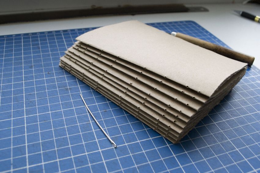 Une solide couverture de cahier faite à la main protège les feuilles intérieures de la saleté et aide à garder le cahier en forme. La couverture peut être fixée de différentes manières et la technique de fixation dépend de la forme et du type du carnet choisi, qui sont déterminés au stade de la sélection du croquis.