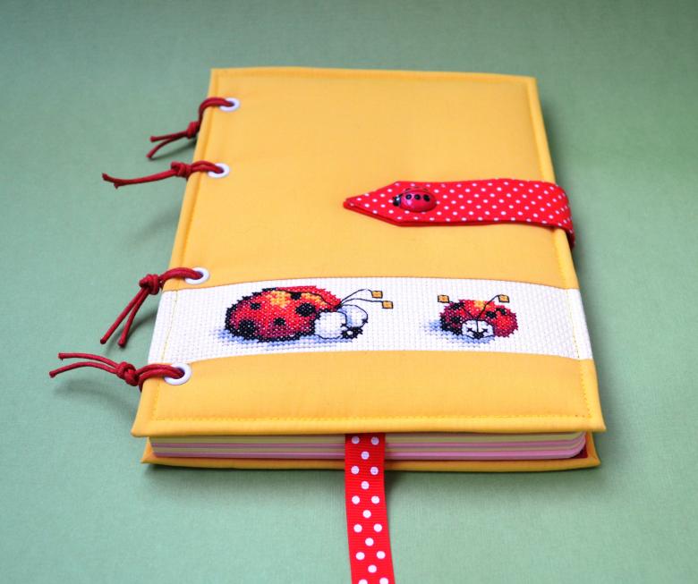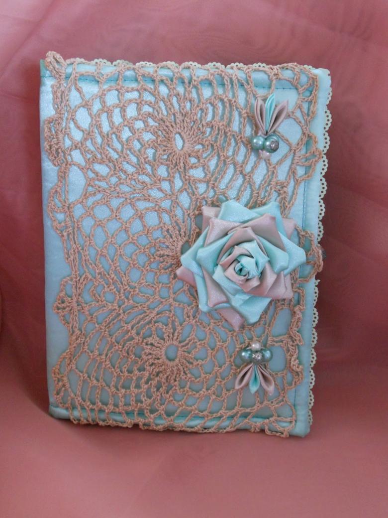 - broderie sur tissu ou cuir, vous pouvez broder non seulement avec des fils forts, mais aussi avec des rubans fins, créant ainsi une décoration originale pour la couverture ;